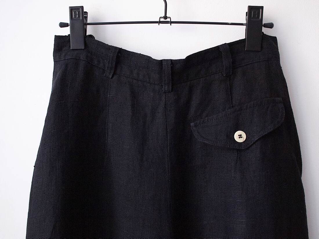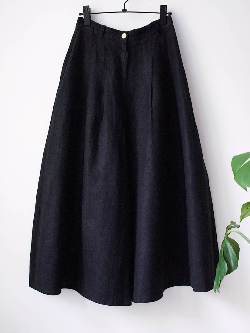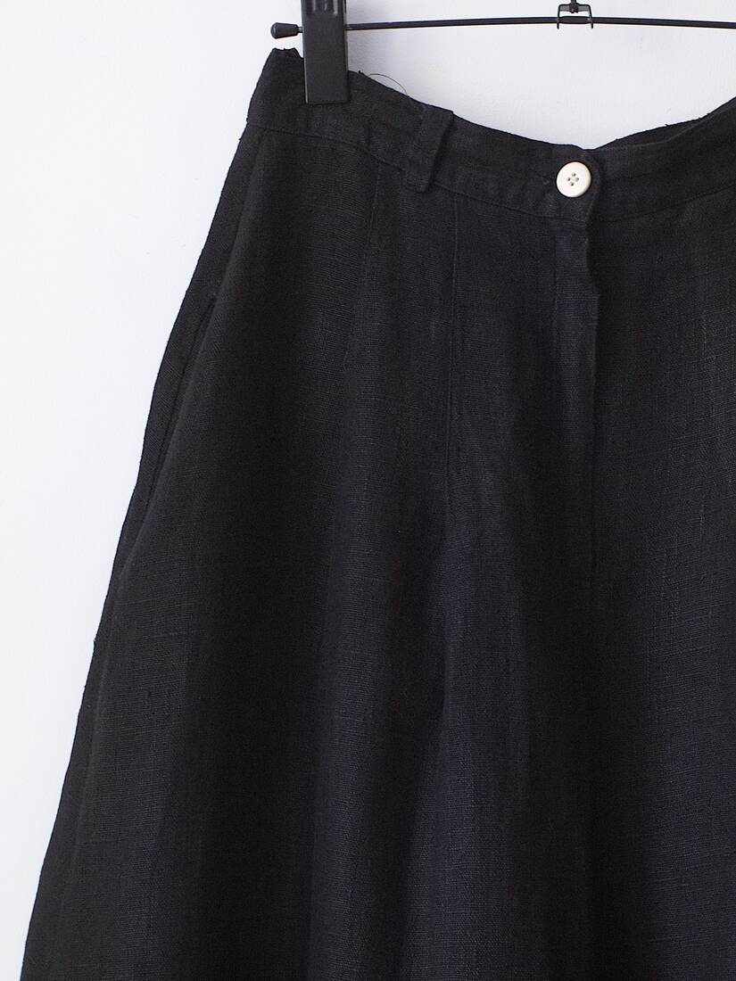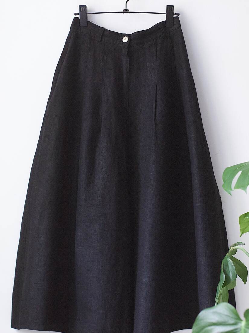 Lniane spodnie z bardzo szerokimi nogawkami. Kieszenie, szlufki na pasek, wysoki stan. Wykonana z grubego, mięsistego lnu. Polecam na XS-S, bez wad.