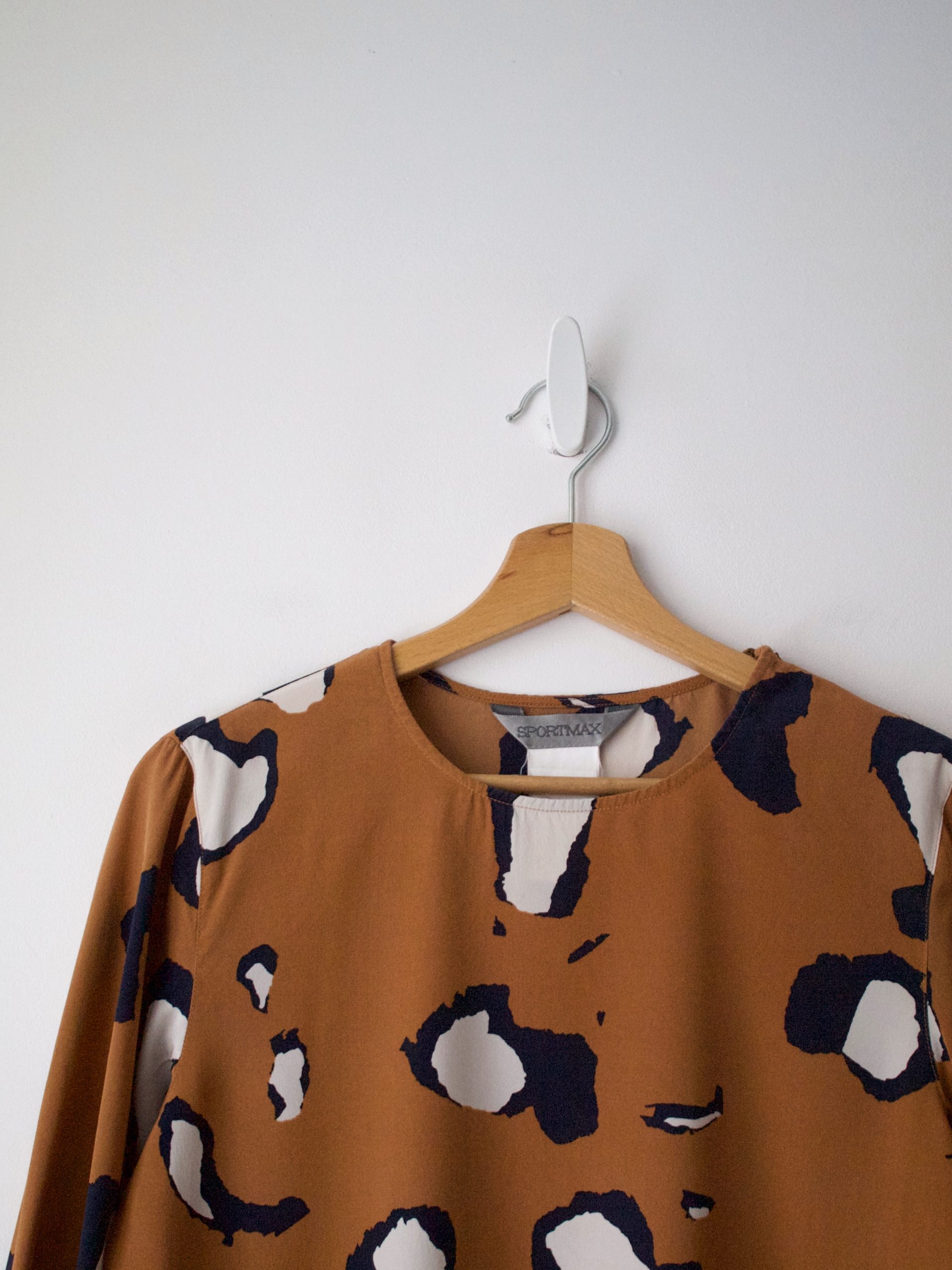 Koszula ekskluzywnej marki Sportmax (grupa Max Mara), w 100% wykonana z gęstego jedwabiu. Posiada ukryty zamek na ramieniu oraz ciekawe rękawy. Cena katalogowa £187, czyli ponad 900 zł.