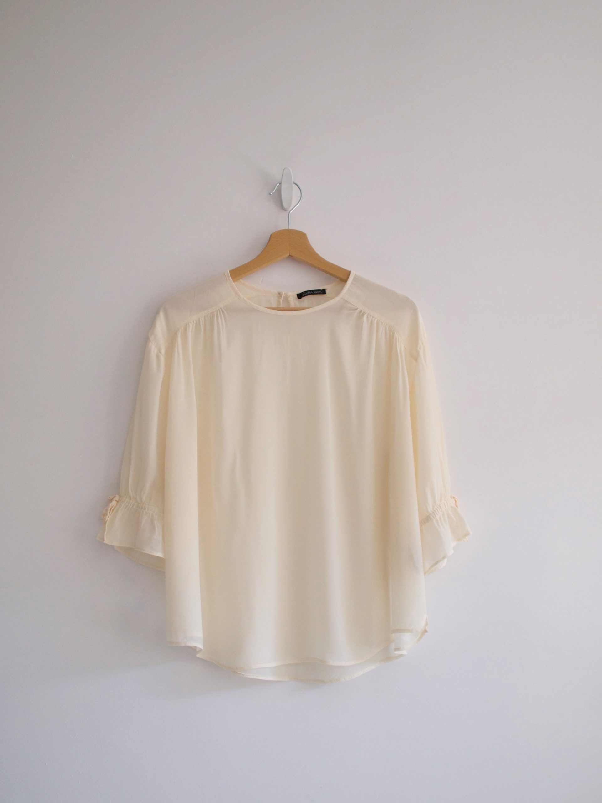 Bluzka ekskluzywnej duńskiej marki Stella Nova. Rozmiar z metki: 38 Skład: brak metki, wiskoza, lub wiskoza/jedwab Stan: bez wad Szerokość w klatce 60 cm Długośćcałkowita 64 cm