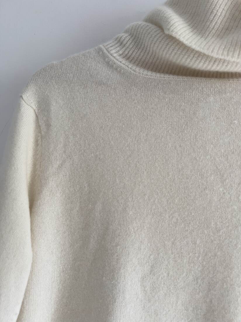 Kaszmirowy sweter marki Uniqlo. Prosty fason z dużym golfem. Rozmiar z metki S, standartowa rozmiarówka. Będzie pasować również na XS. Bez wad.