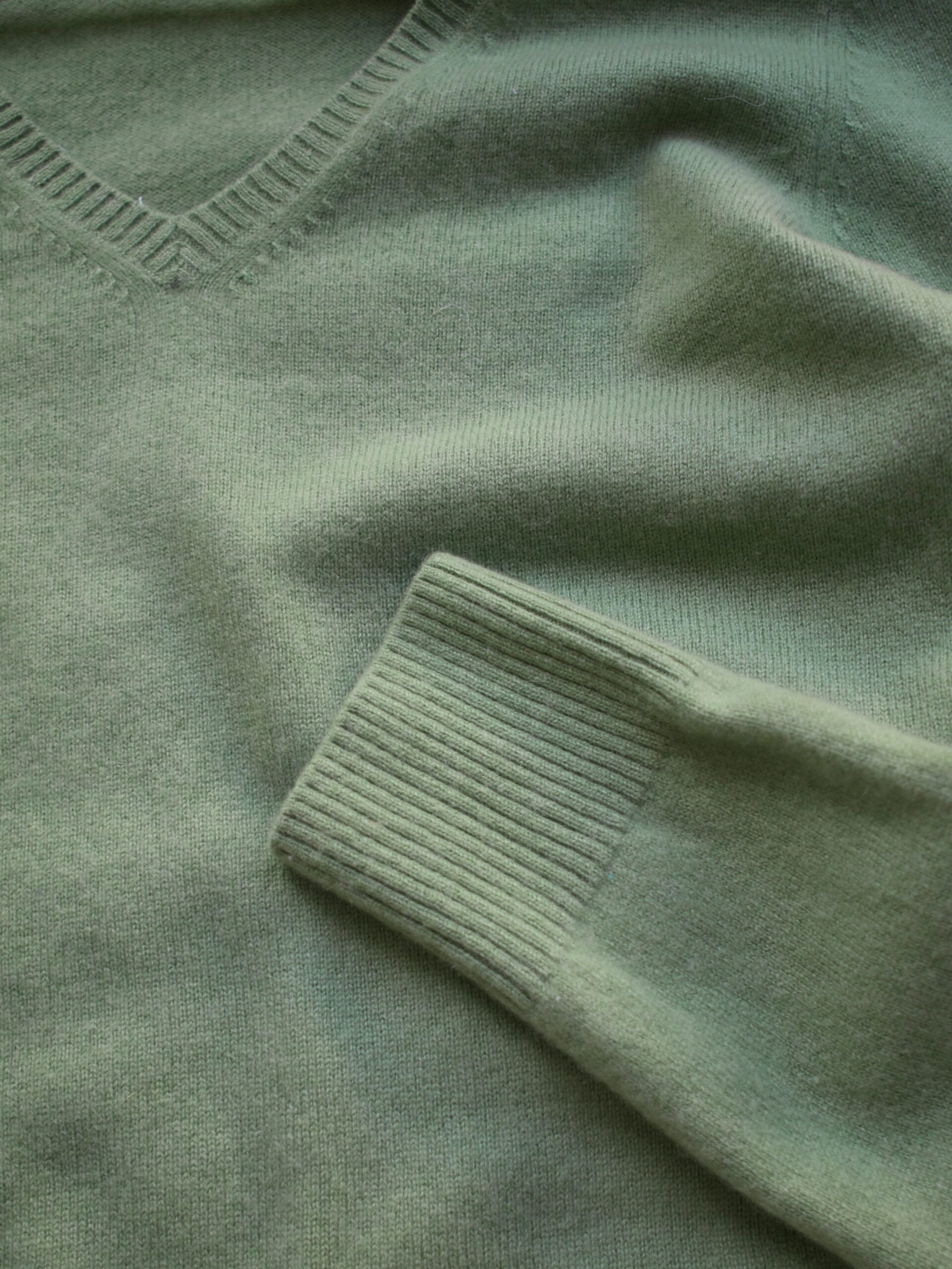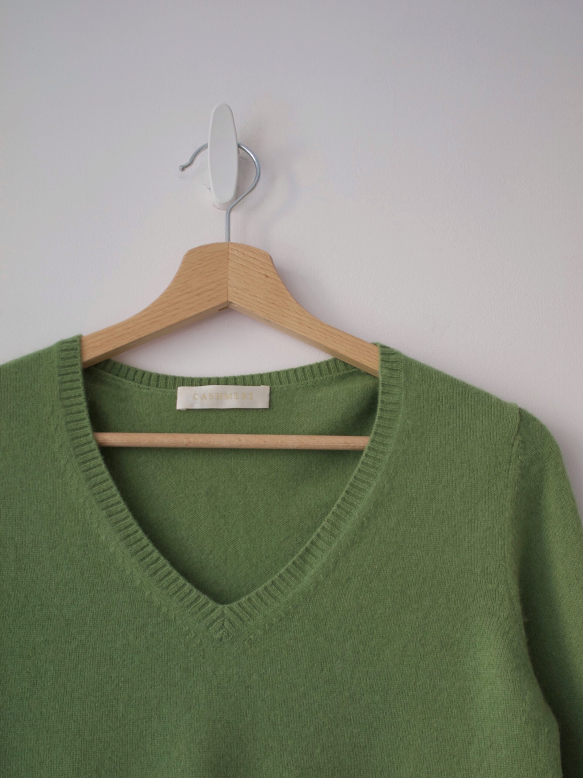 Kaszmirowy sweter w pistacjowym kolorze, marka Uniqlo. Klasyczny fason, sweter bardzo milutki w dotyku