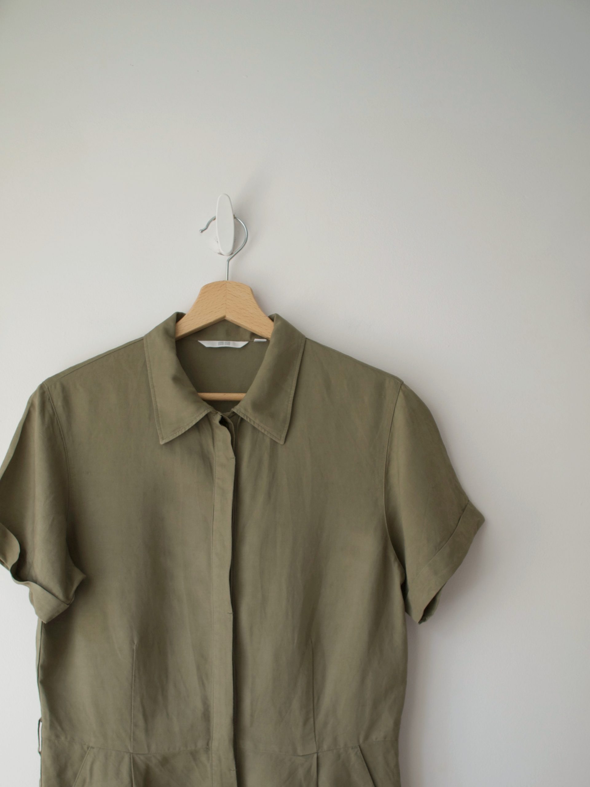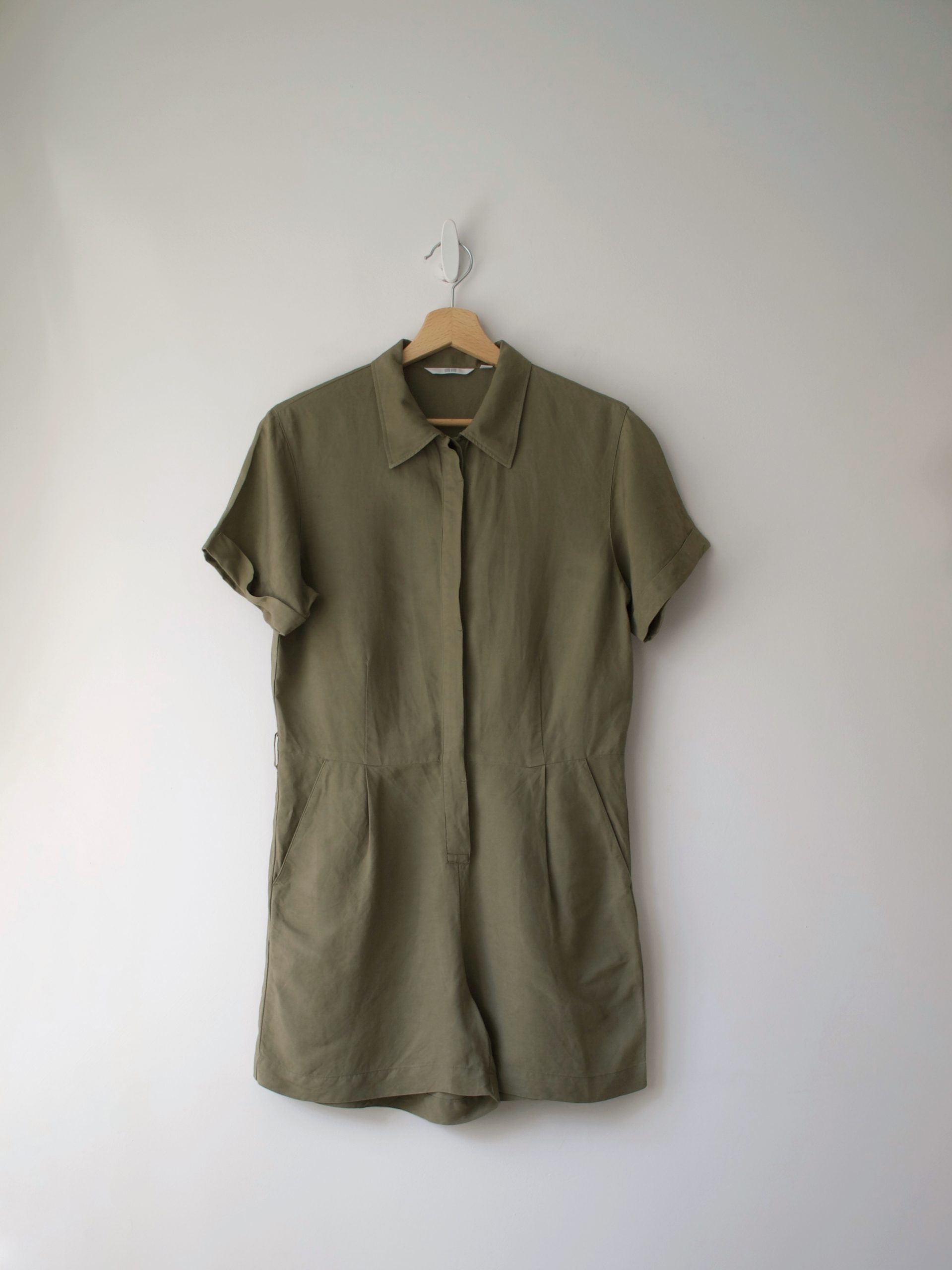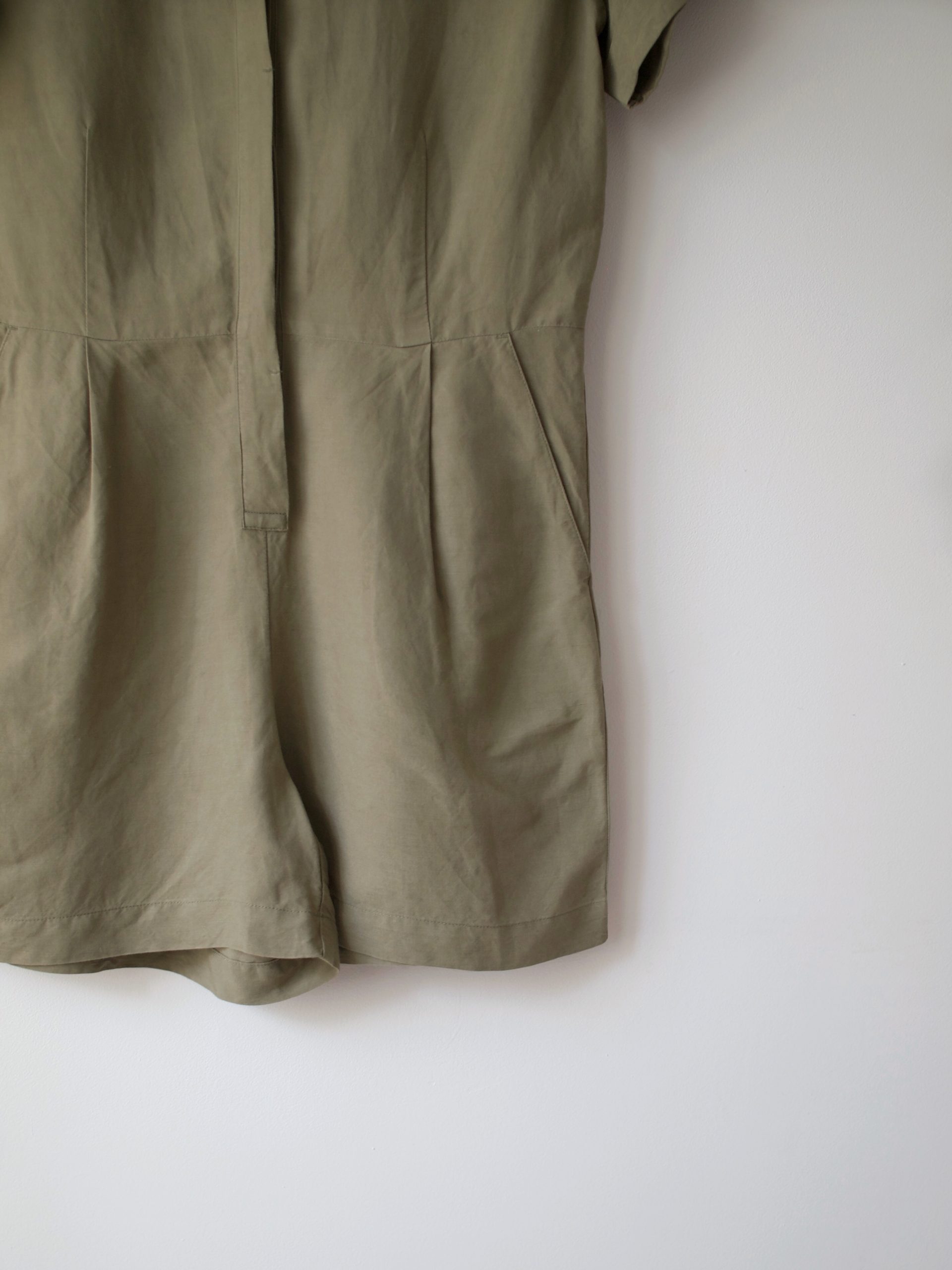 Kombinezon marki Uniqlo, wykonany z tkaniny z dużym dodatkiem lnu.