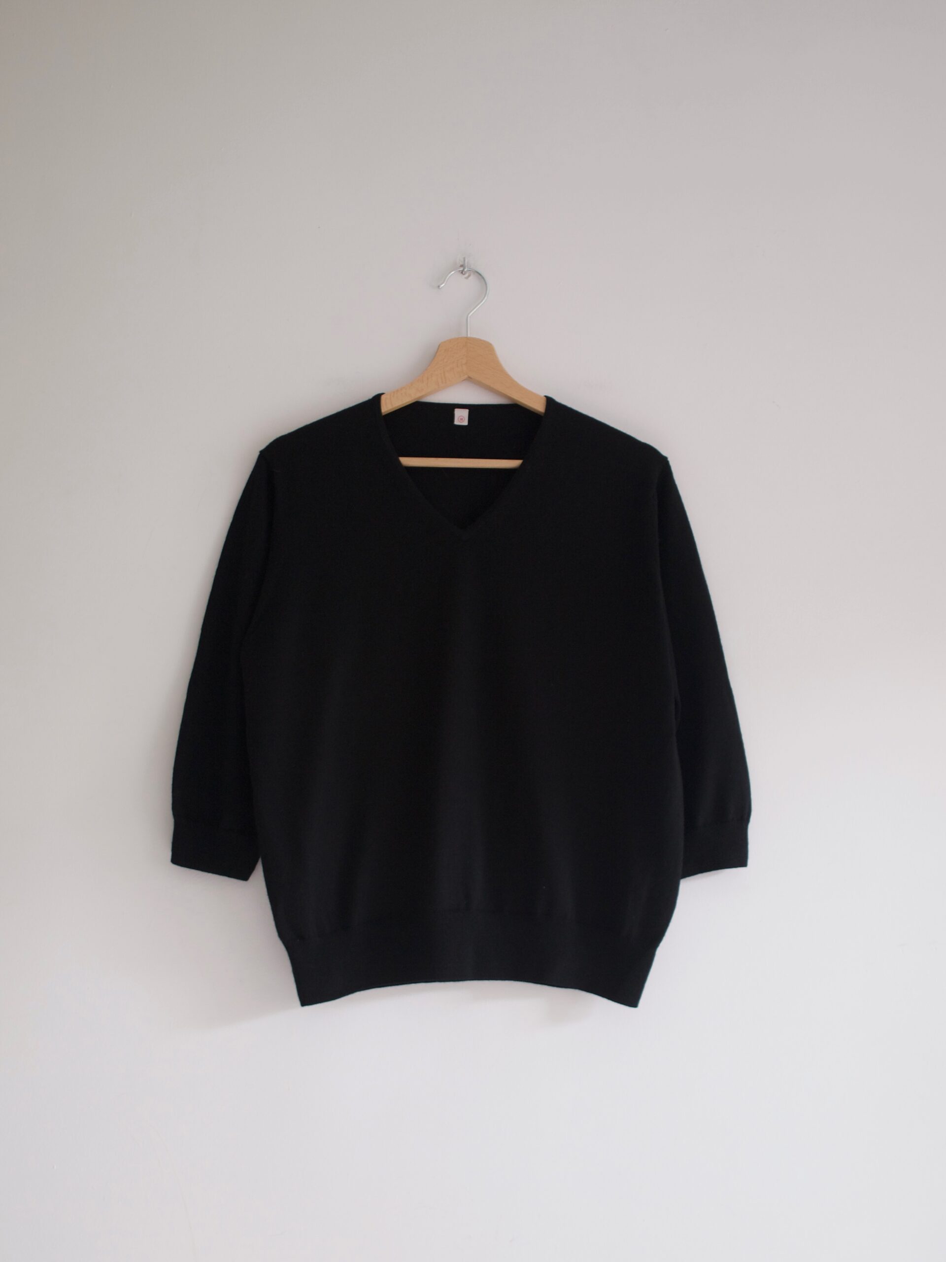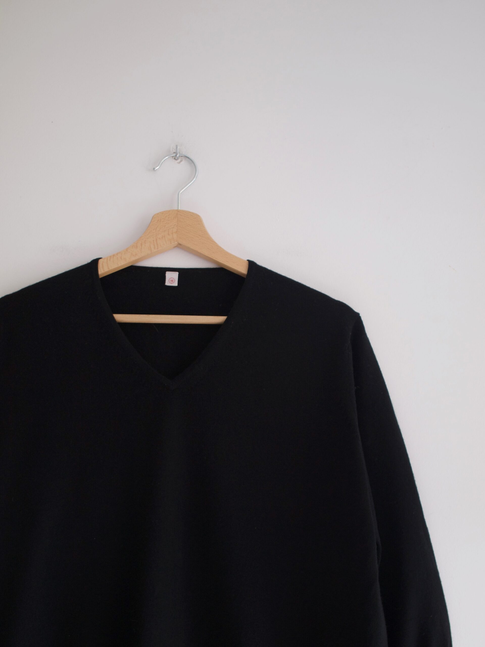 Klasyczny sweter M&S z dekoltem w serek. Skład to 100% kaszmir, bardzo dobry stan, jest minimalnie sfilcowany, nie jest to zauważalne, po prostu jest trochę sztywniejszy.