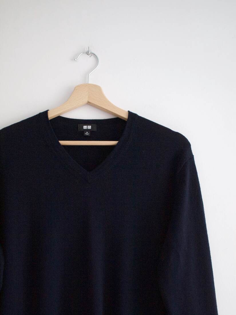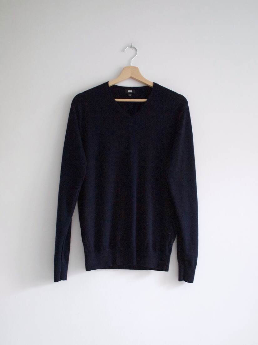 Sweter basic marki Uniqlo w granatowym kolorze. W 100% wykonany z wełny. Rozmiar z metki M, idealny stan.