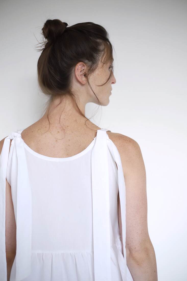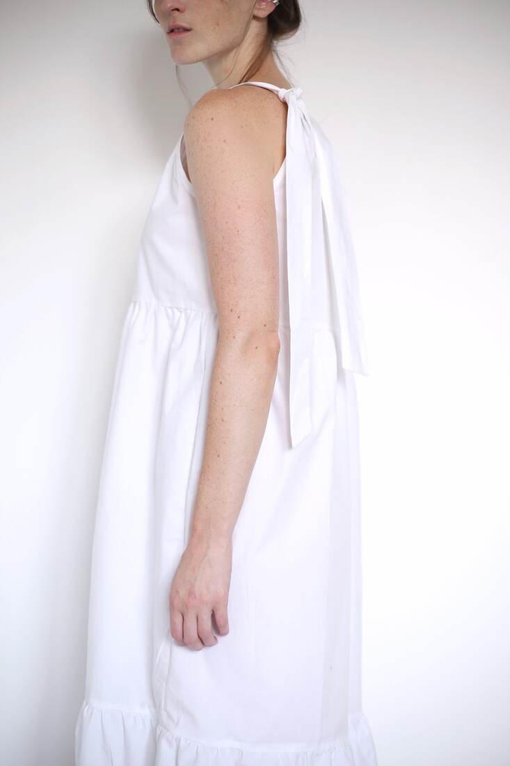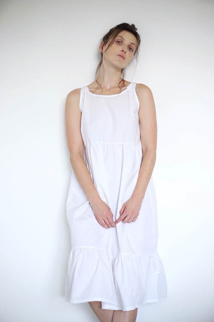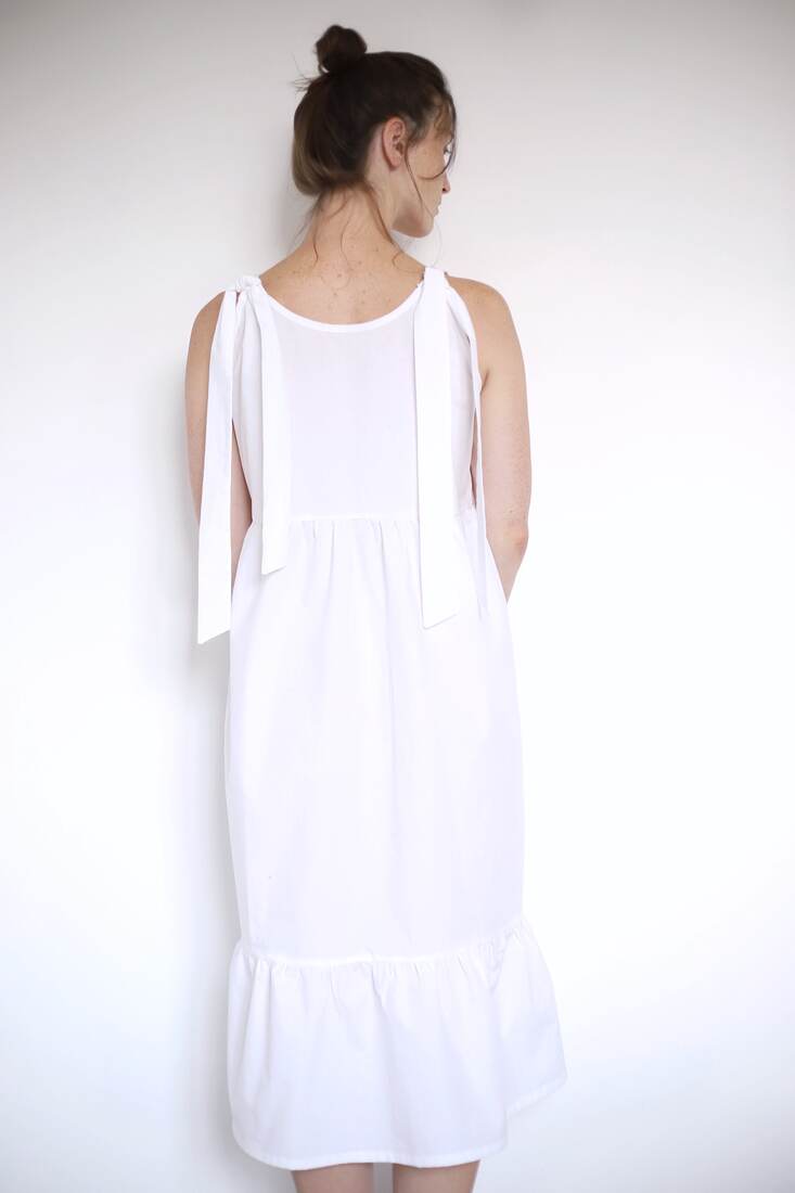 Sukienka upcycled, szyta z bawełnianej popieliny. Swobodny fason, wiązane ramiączka. Rozmiar dość uniwersalny, będzie pasować na XS-S-M-mniejsze L.