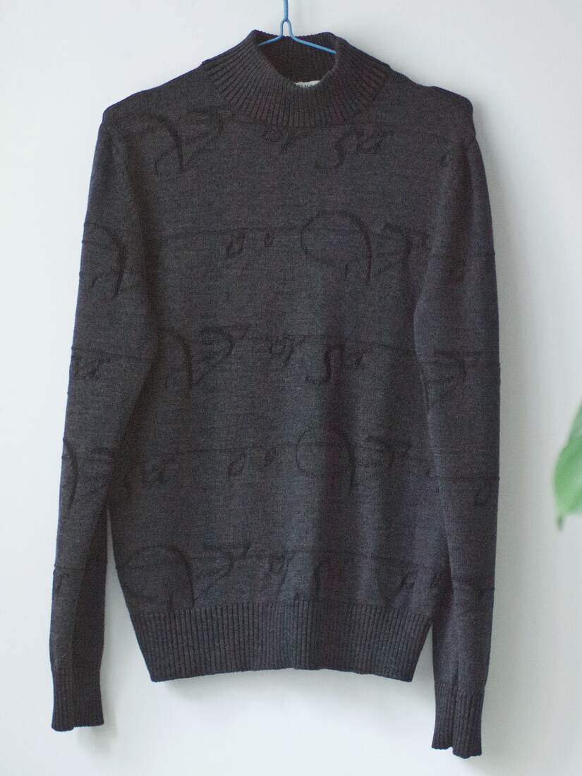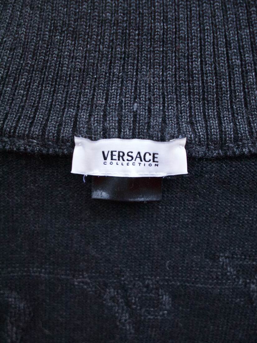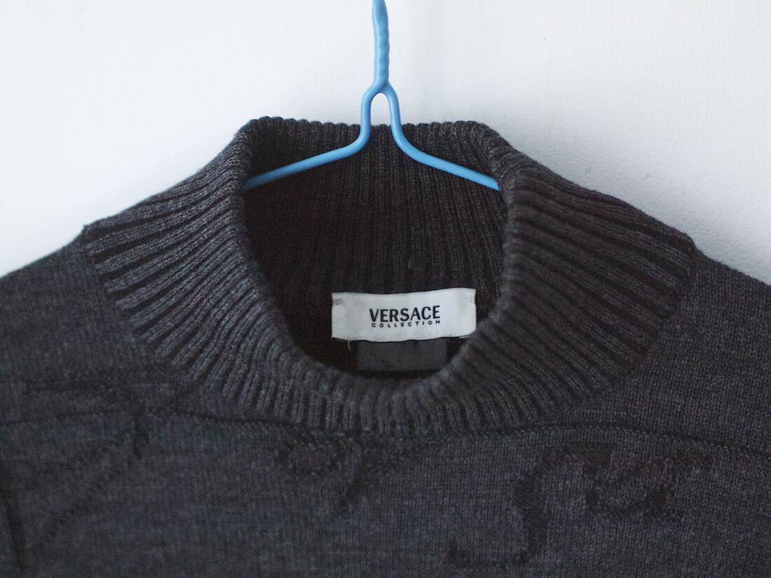 Logowany sweter domu mody Versace, wykonany w 100% z wełny merynosa. Rozmiar z metki M, model męski.