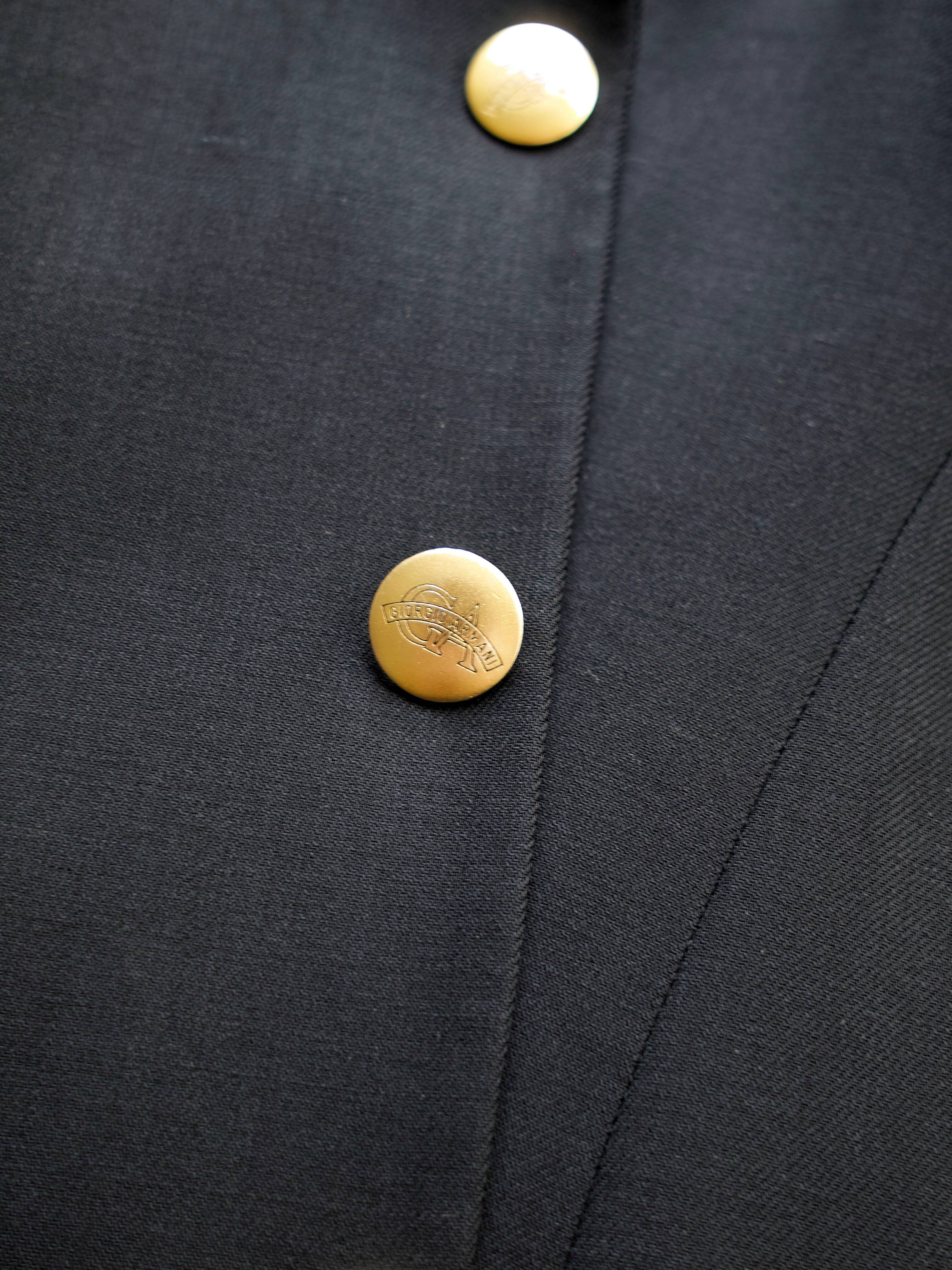 Marynarka domy mody Armani, model vintage. Zapinana na „złote” sygnowane guziki.