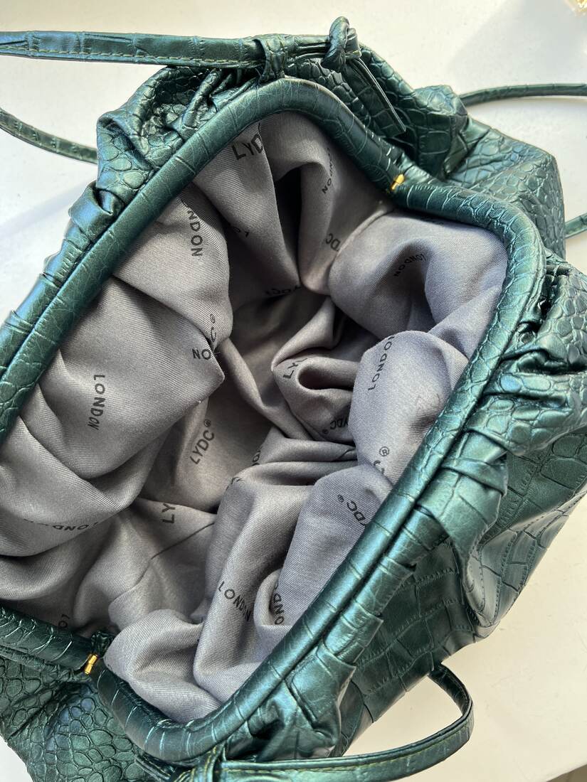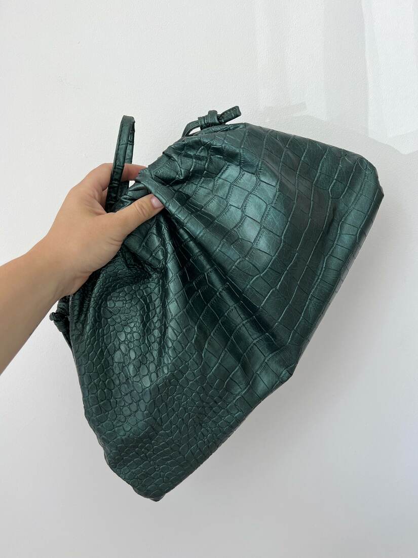 Torebka z eko skóry w szmaragdowym kolorze. Z podszewką, w środku jedna duża komora. Możliwość regulacji paska. Idealny stan. Długość paska 60*2 cm