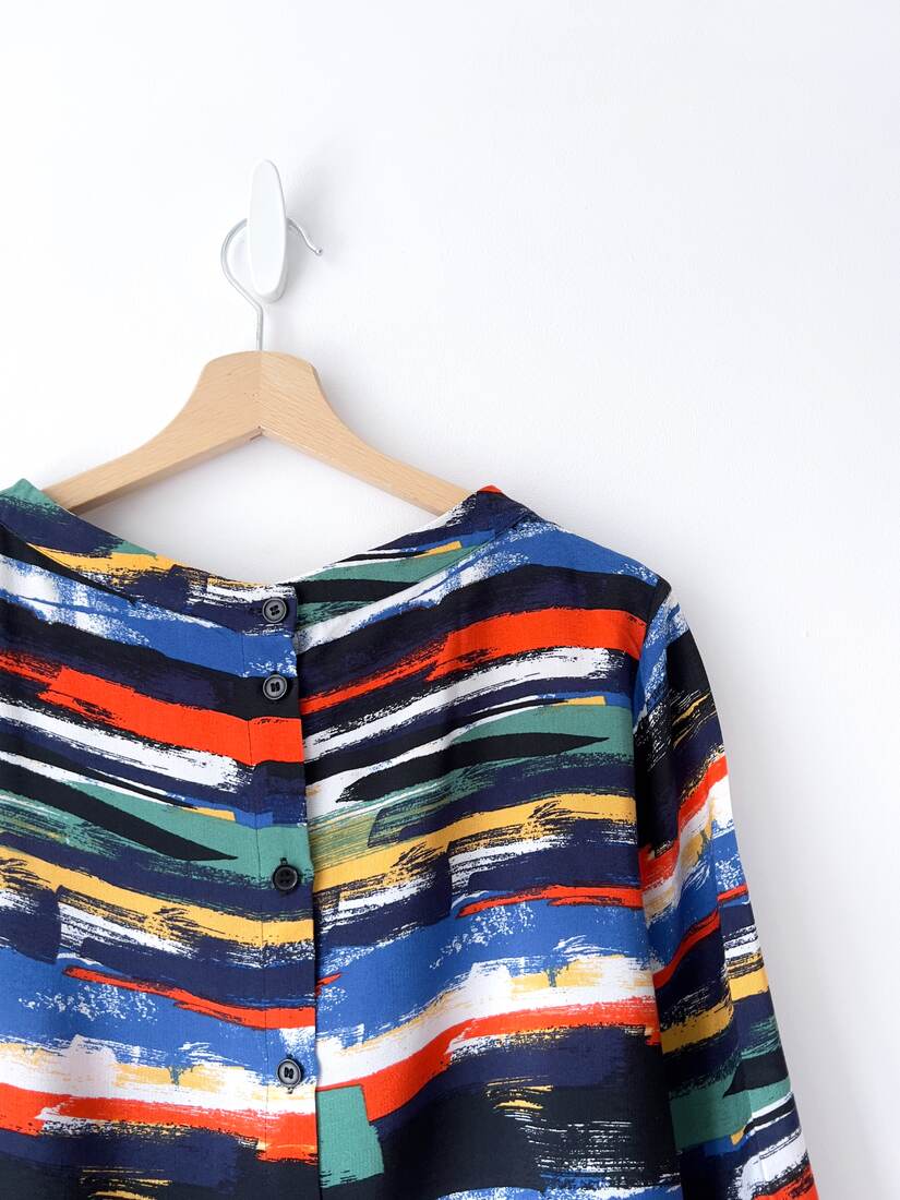 Kremowa koszula vintage z ozdobnymi guzikami i plisami na rękawach. Brak metki ze składem (prawdopodobnie poliester), materiał prawie nie gniecie się. Brak metki z rozmiarem, proszę sprawdzać wymiary. Bez wad.