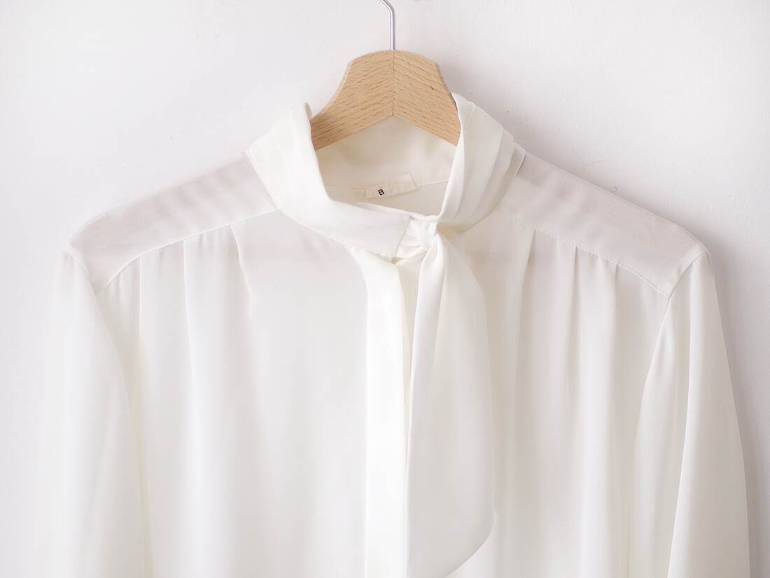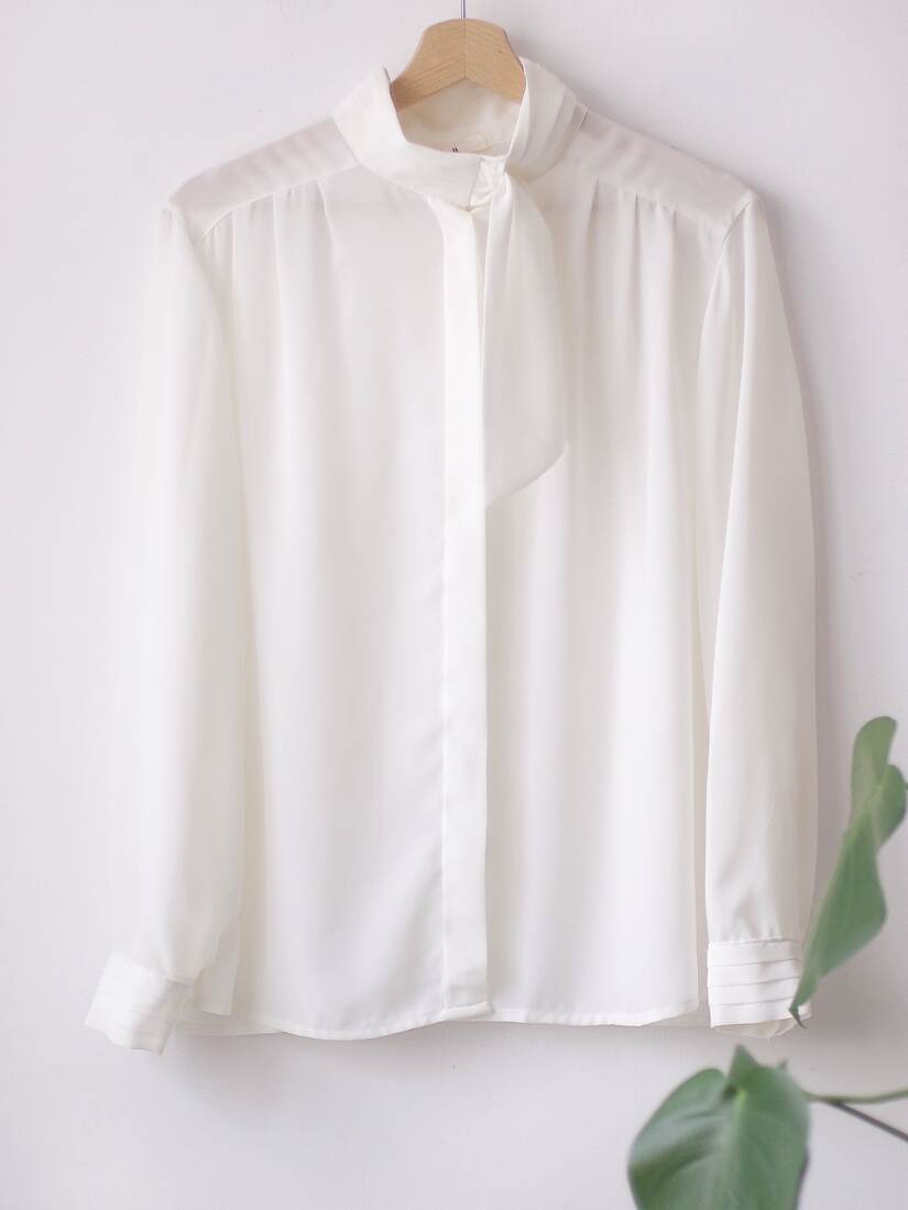 Bluzka vintage z lat 80, made in West Germany. Kołnierzyk stójka z ozdobnym wiązaniem, bluzka zapinana na ukryte guziki. Polecam na rozmiar M-L, wymiary poniżej. Bez wad.