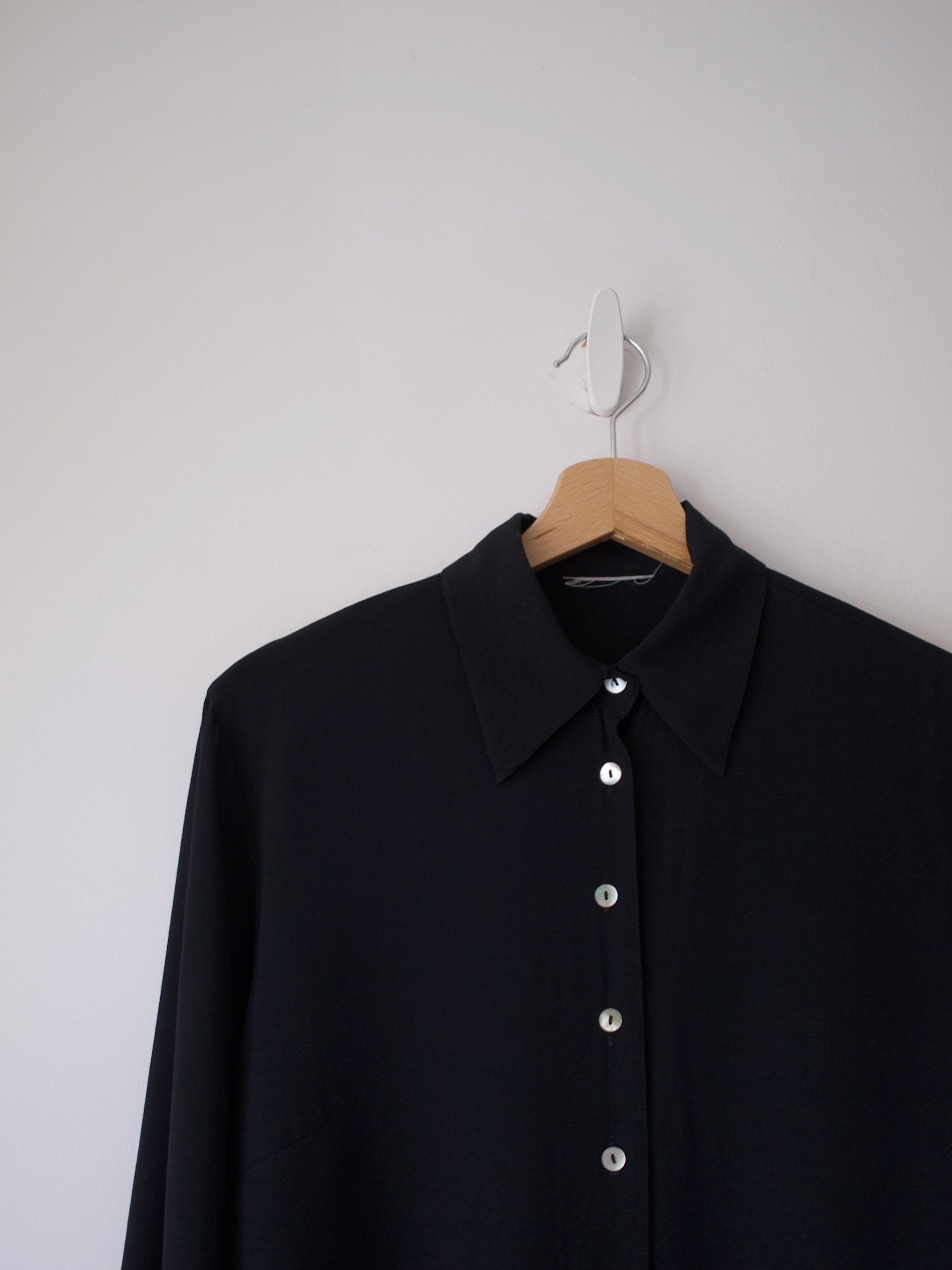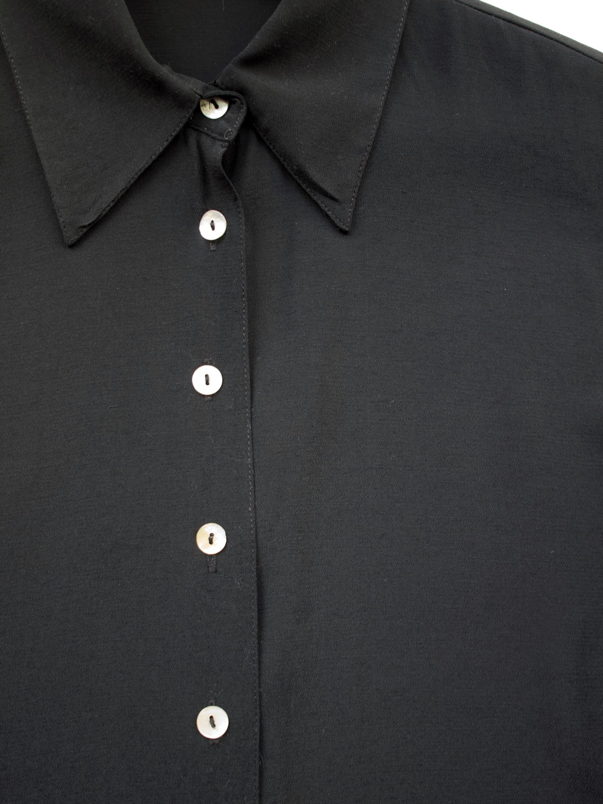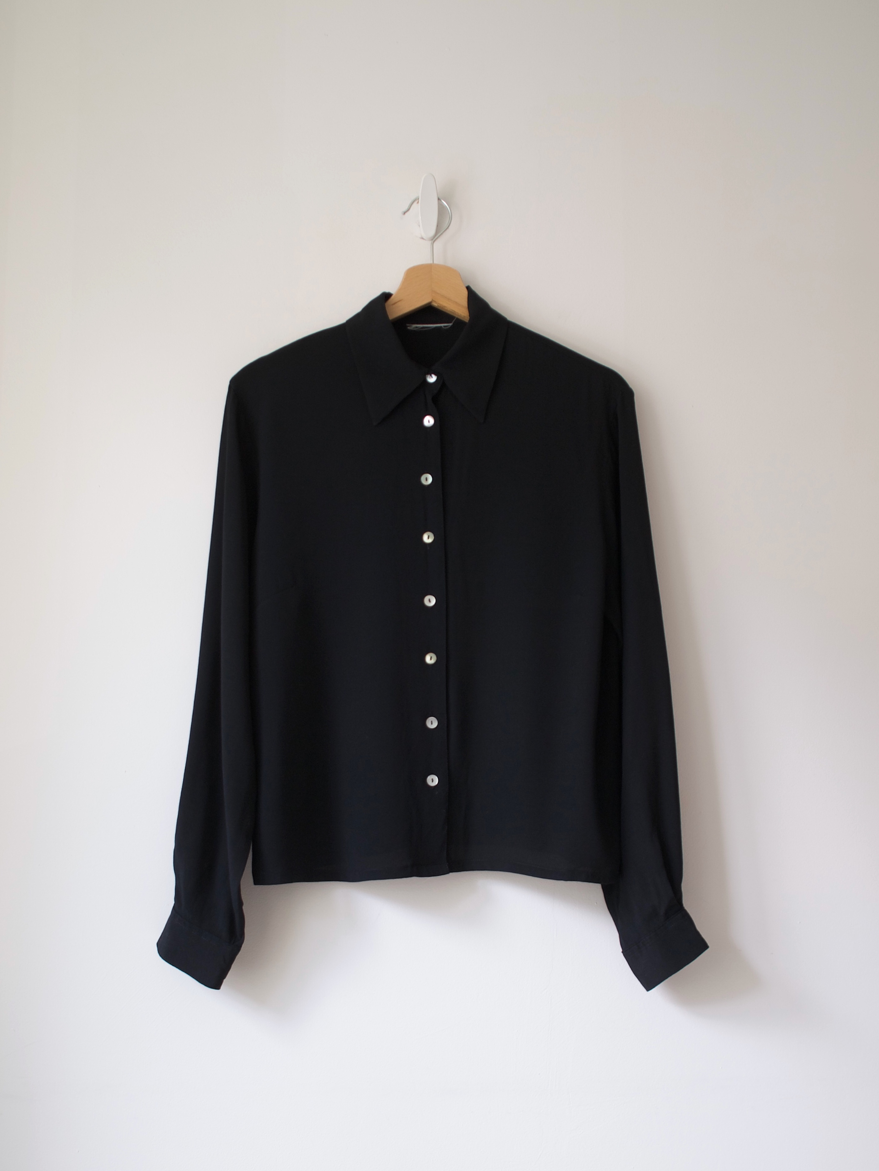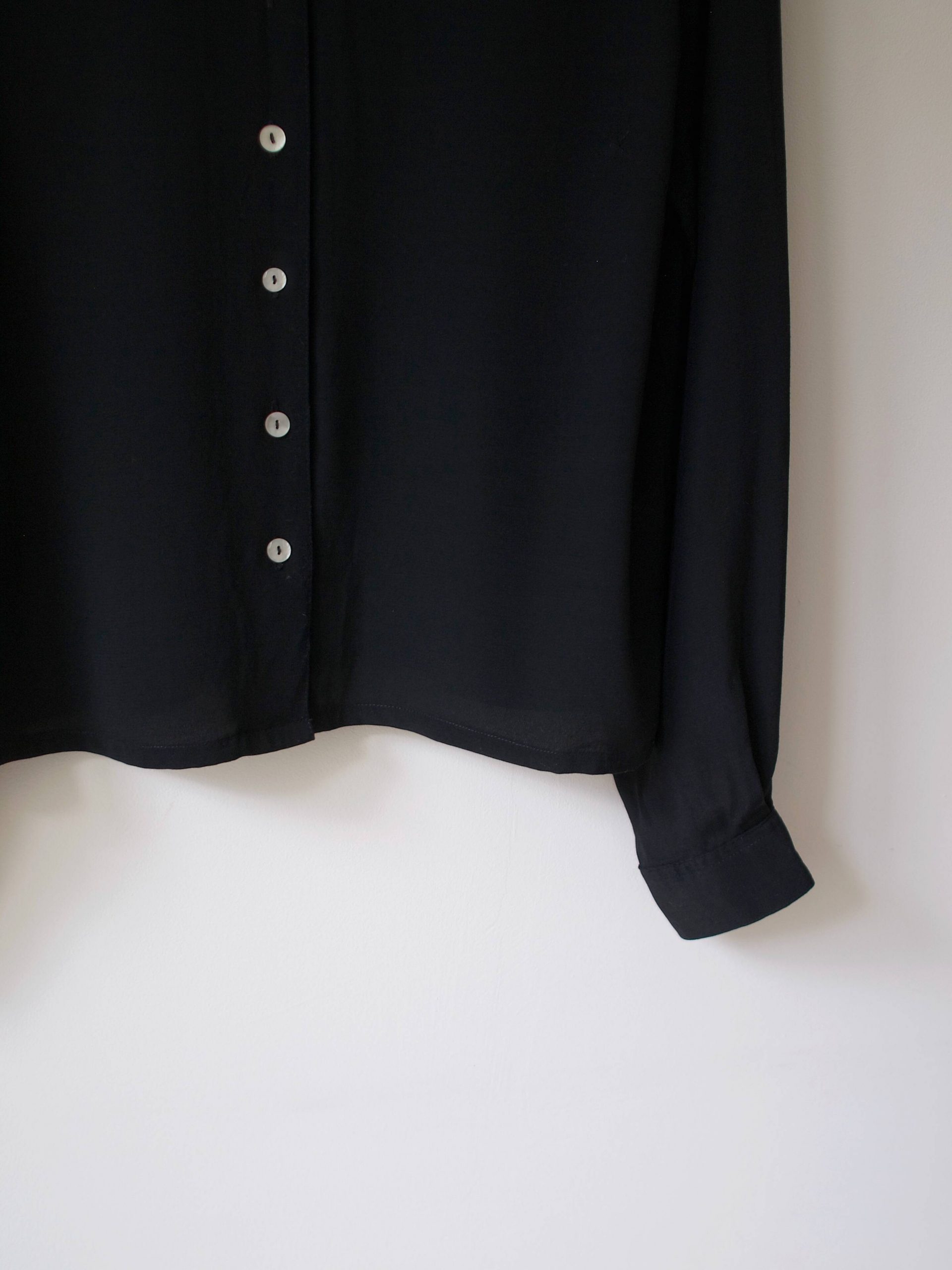 Bluzka vintage, zapinana na guziki z naturalnej muszli. Rozmiar z metki: brak Skład: 100% rayon Stan: bez wad Szerokość w klatce 50 cm Długośćcałkowita 57 cm