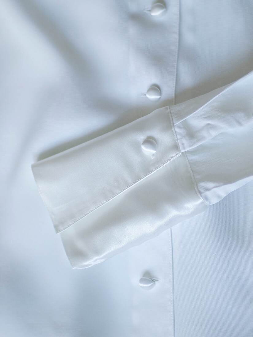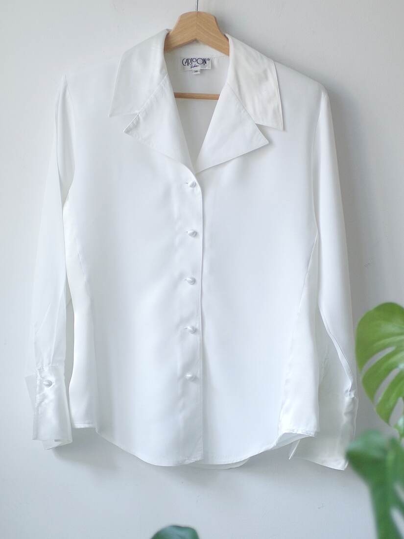 Koszula vintage z kontrastowymi wstawkami. Duży satynowy kołnierz i mankiety, guziki powlekane materiałem. Rozmiar z metki 38, wymiary poniżej. Bez wad.