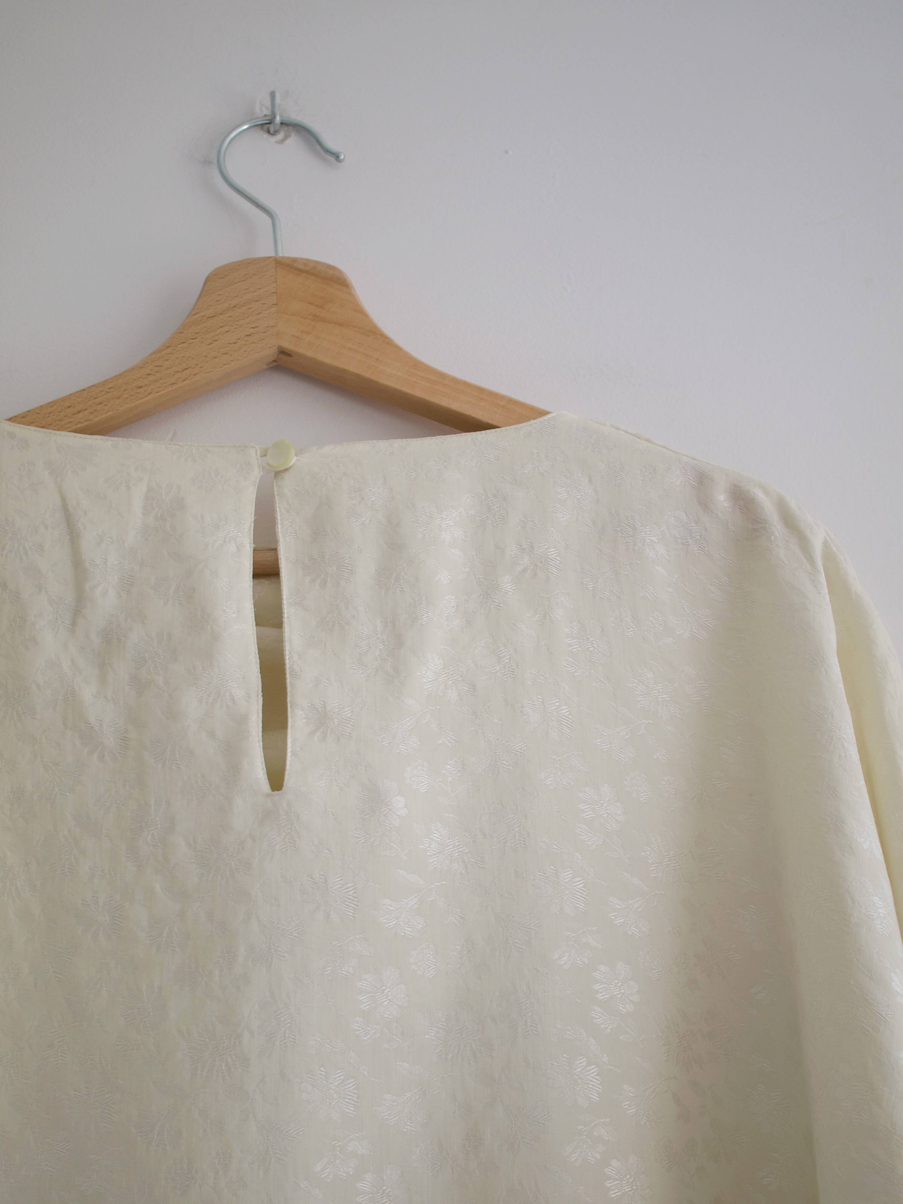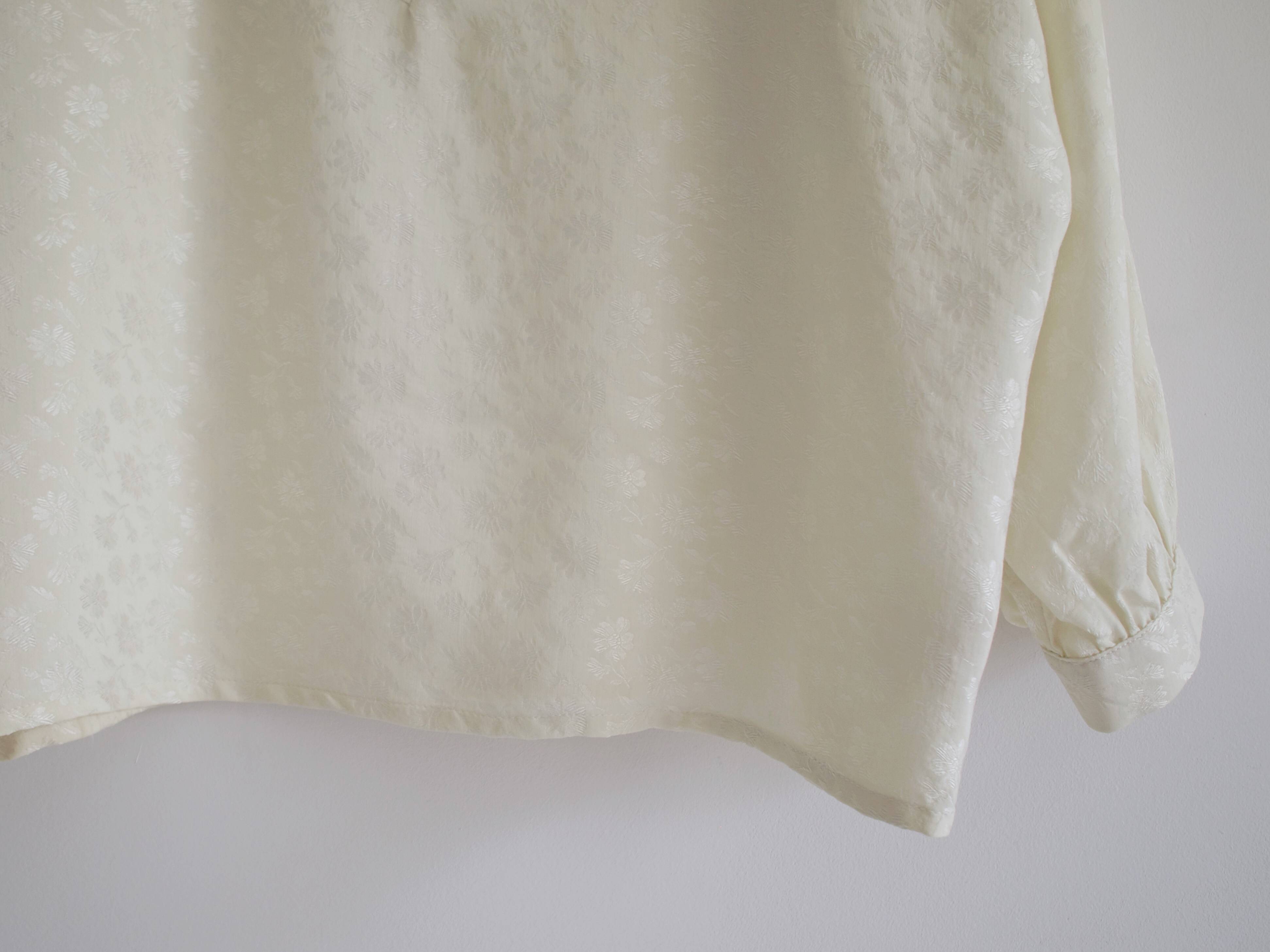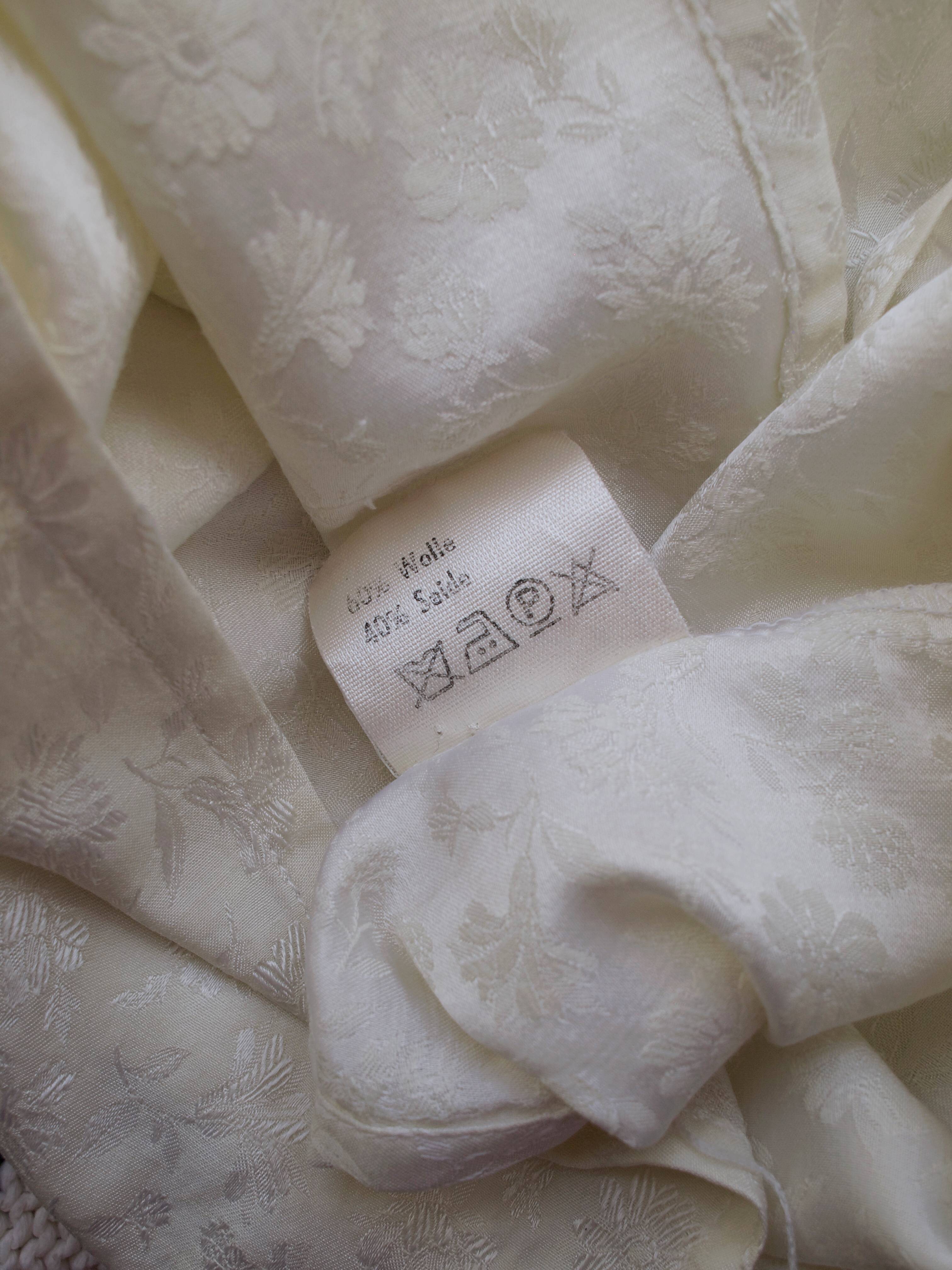 Unikatowa bluzka vintage, wykonana z tkaniny wełnianej z dodatkiem jedwabiu. Materiał w tłoczone wzory.