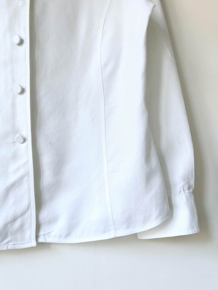 Koszula marki Marks&Spencer, model vintage. W 100% wykonana z bawełny, zapinana na guziki powlekane tkaniną. Rozmiar z metki 42, bez wad.