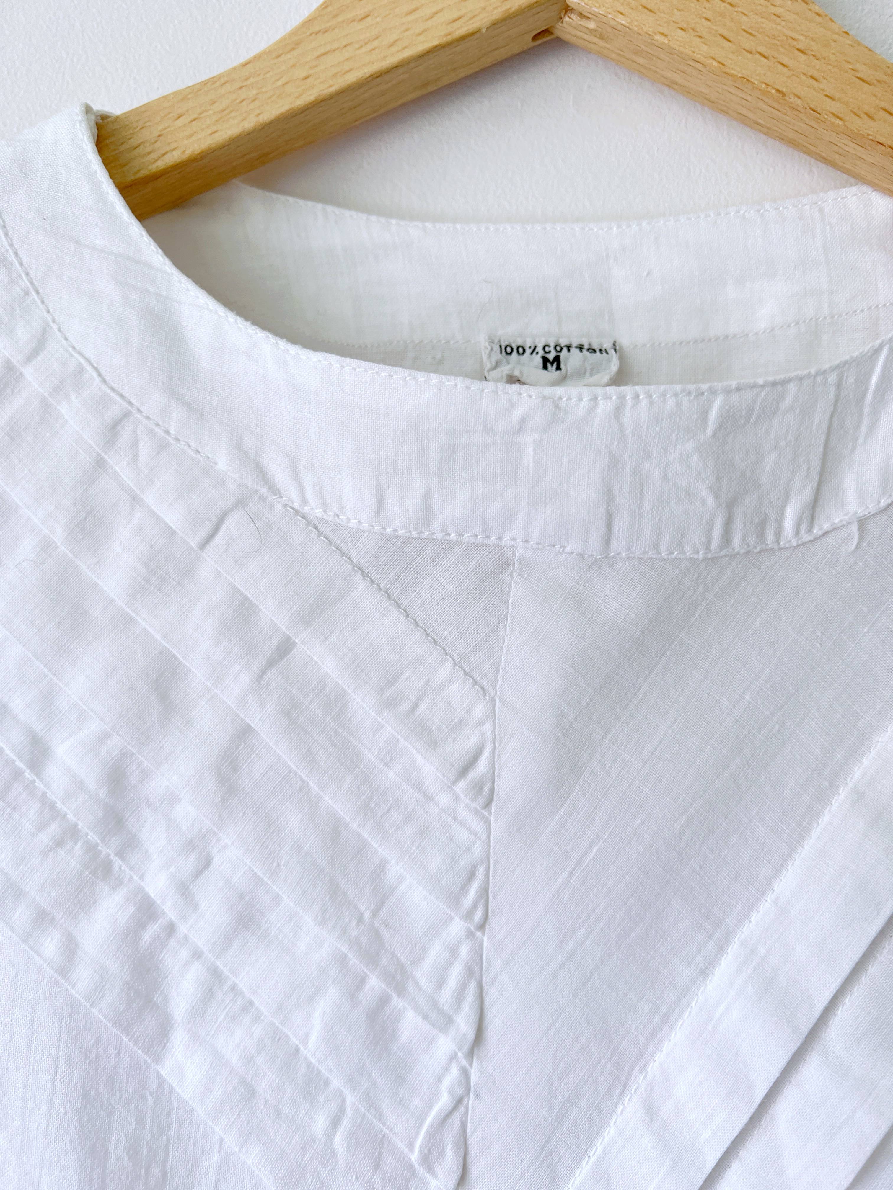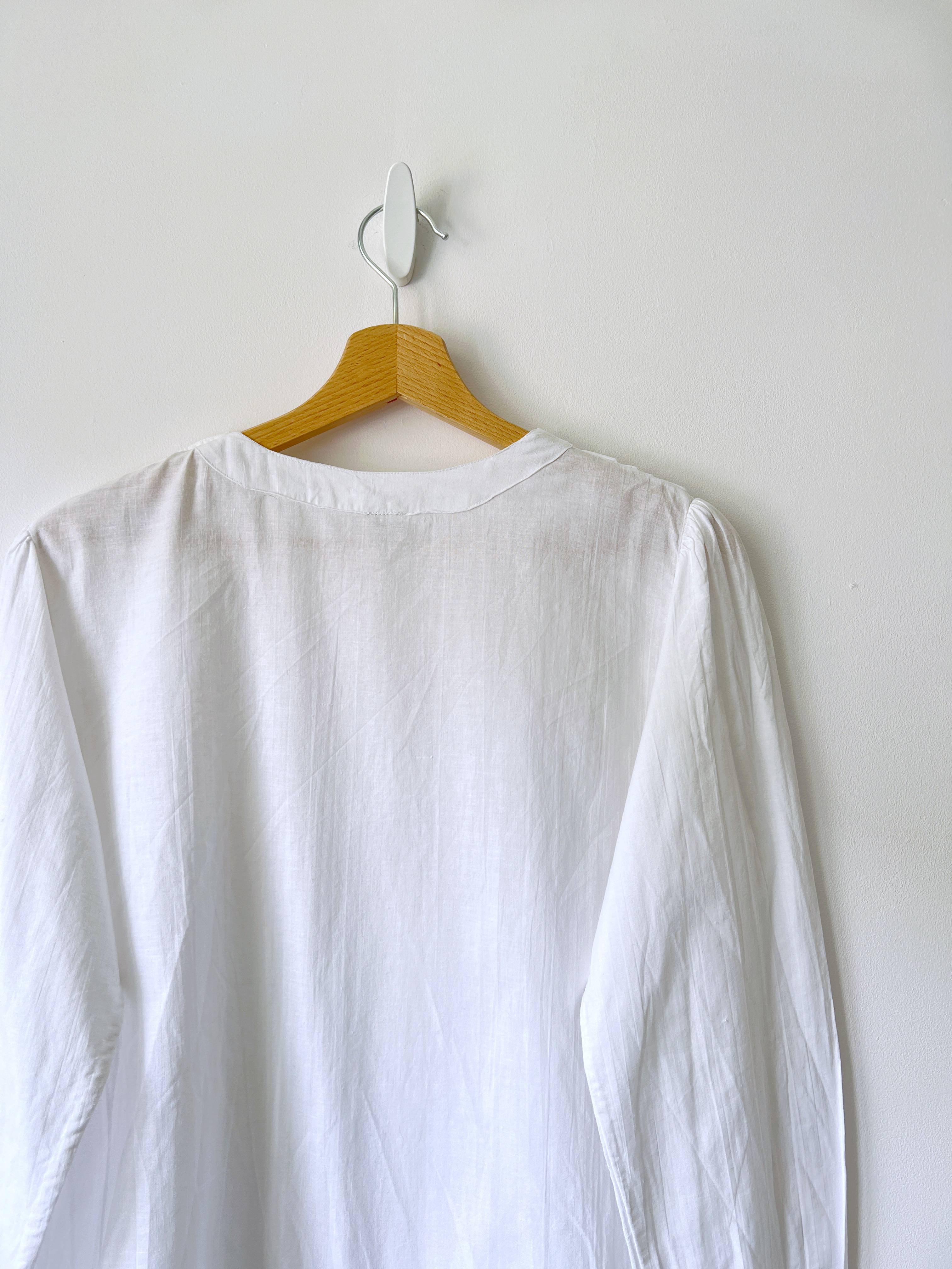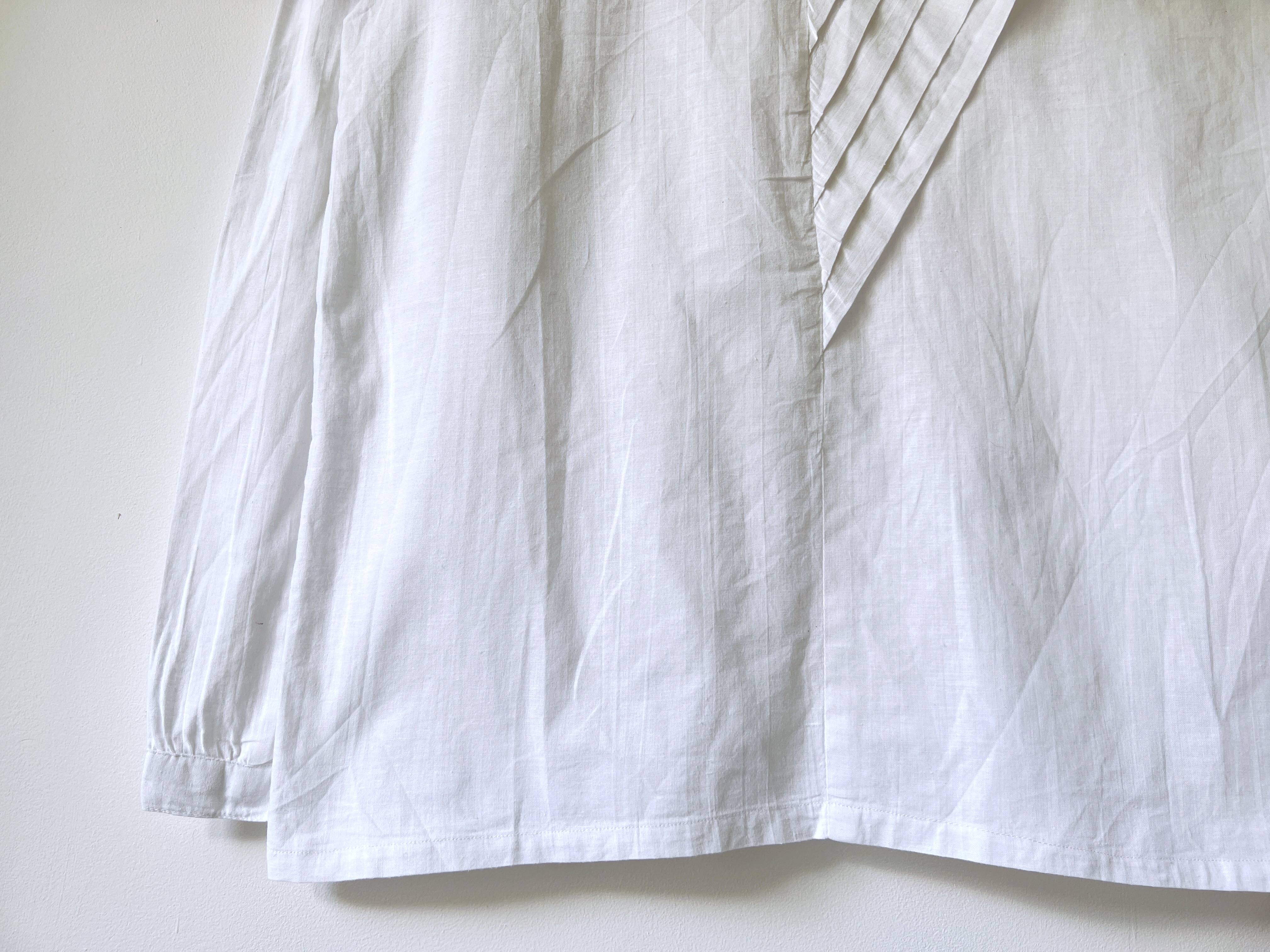 Kremowa koszula vintage z ozdobnymi guzikami i plisami na rękawach. Brak metki ze składem (prawdopodobnie poliester), materiał prawie nie gniecie się. Brak metki z rozmiarem, proszę sprawdzać wymiary. Bez wad.