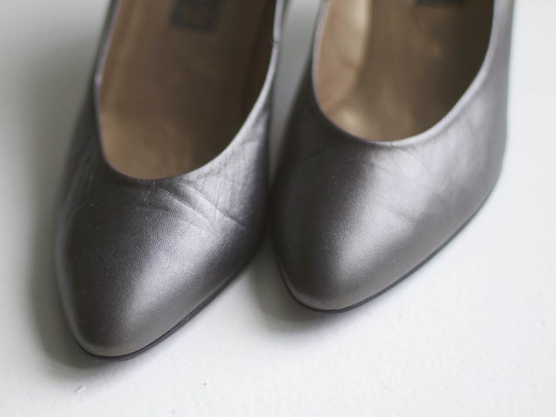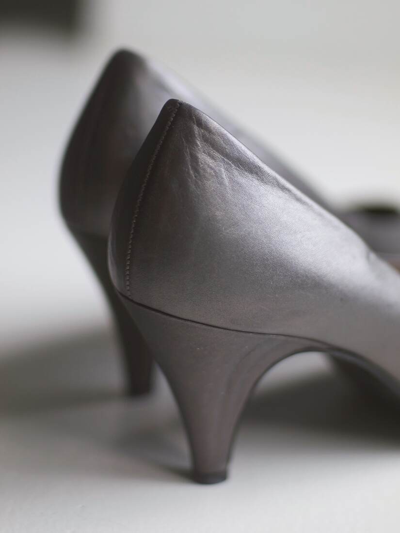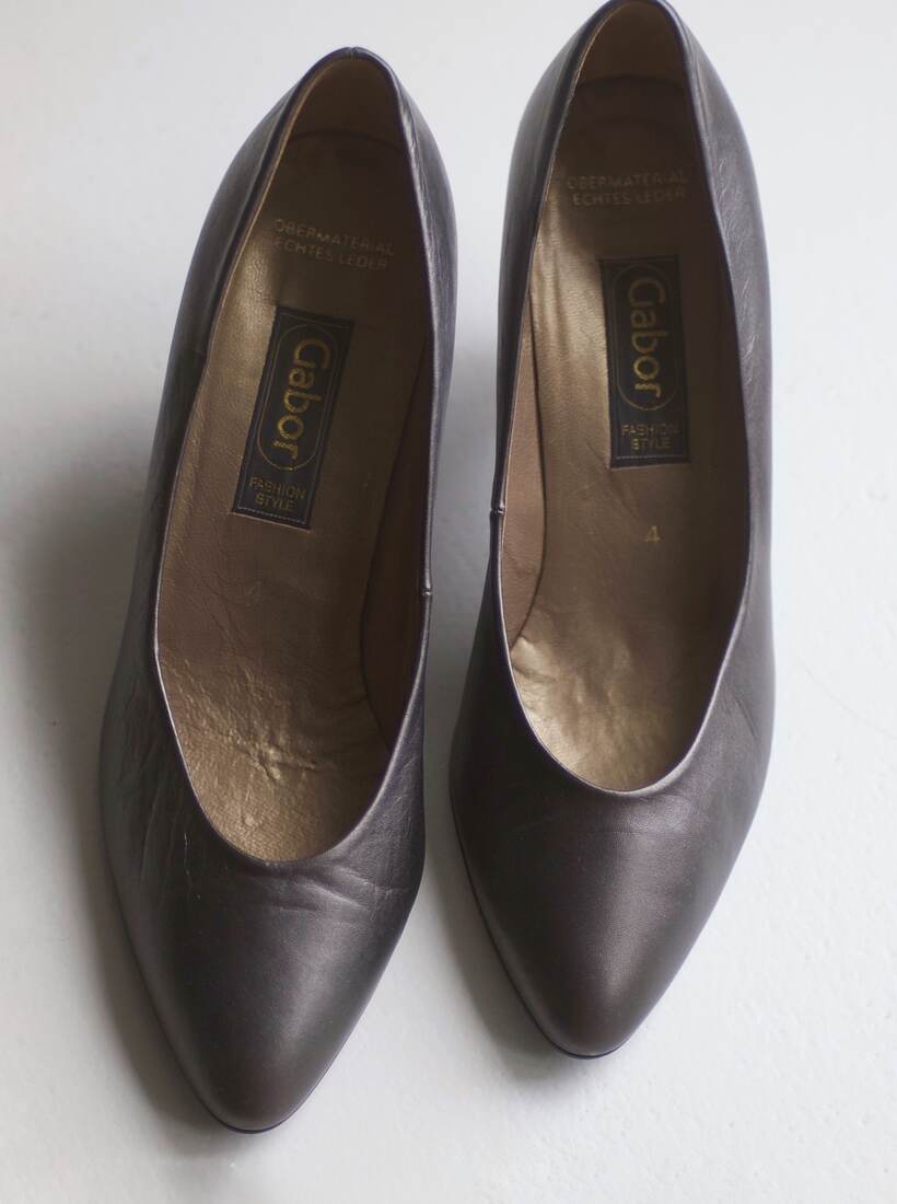 Czółenka ze skóry naturalnej w grafitowym kolorze. Model vintage, wyprodukowane w Niemcach Zachodnich. Rozmiar z metki 4, nie noszone.