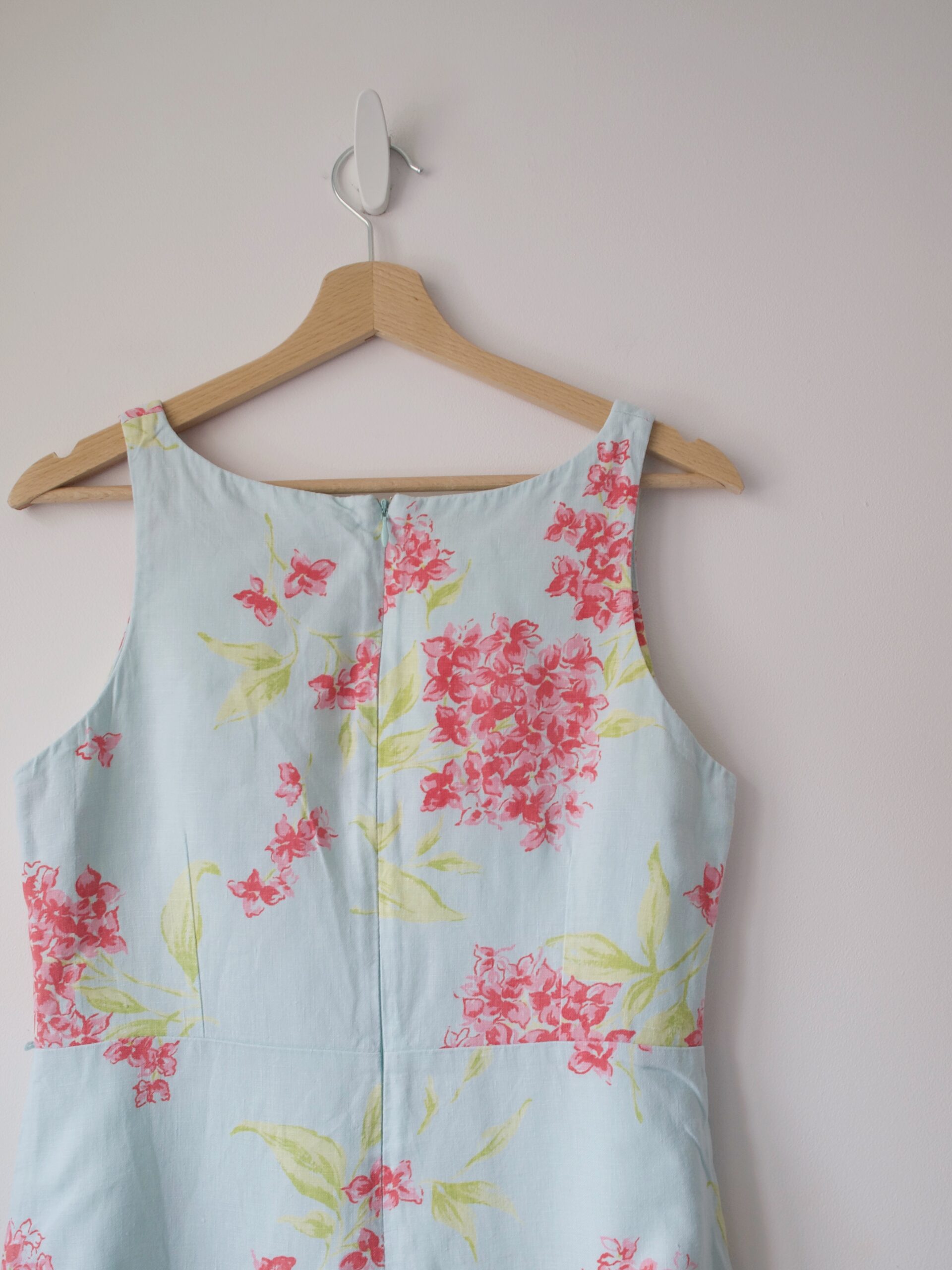 Lniana sukienka vintage. Z tyłu zapinana na zamek. Skład: 100% len, podszewka 100% wiskoza Stan: bez wad Szerokość w klatce 44 cm Długośćcałkowita 104 cm