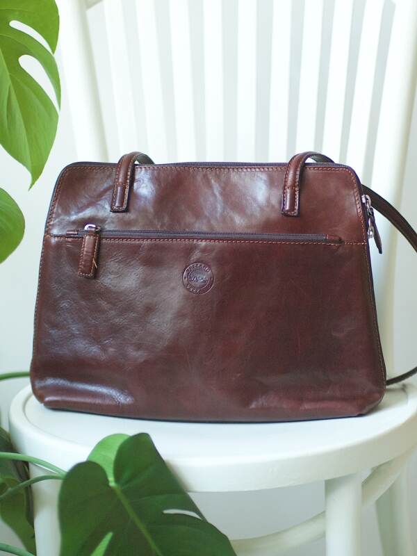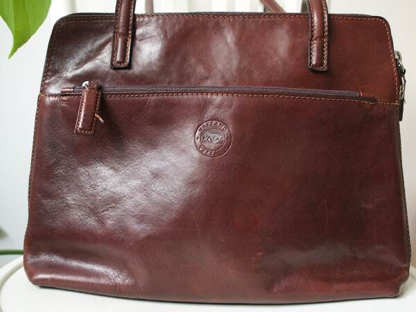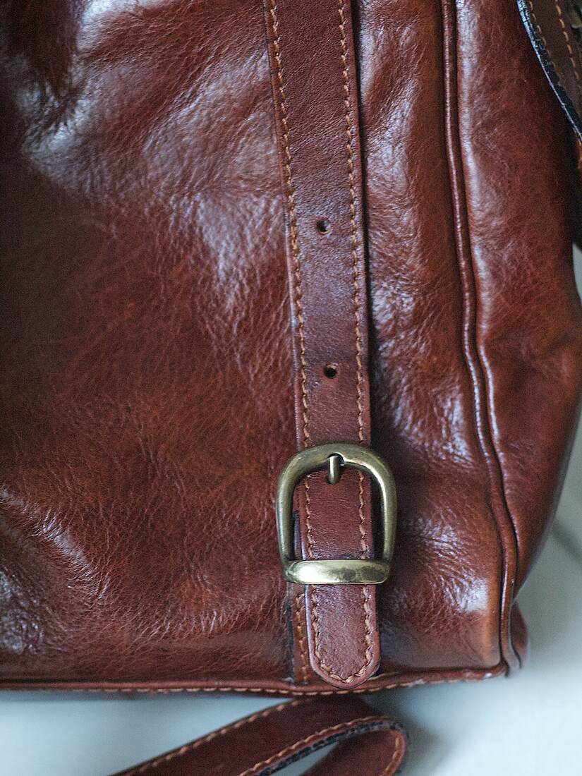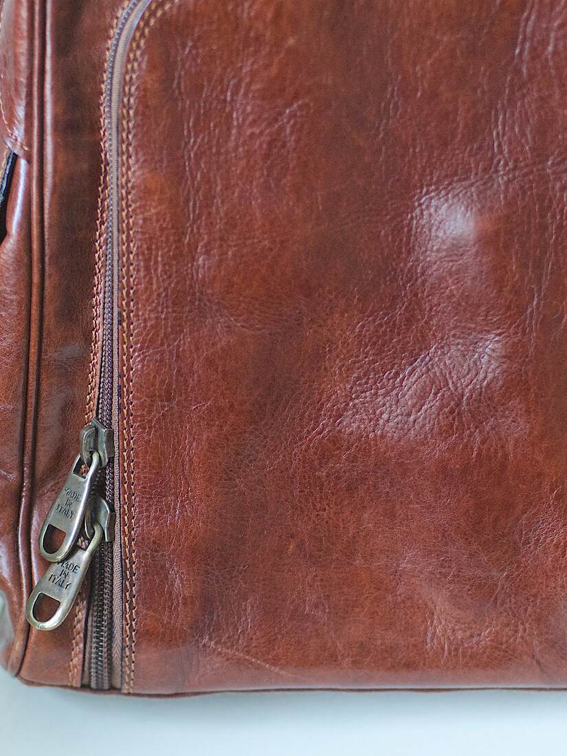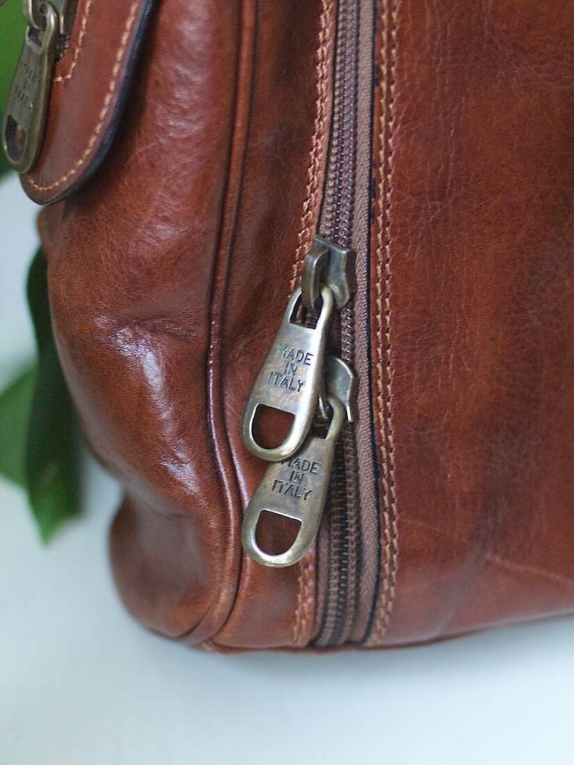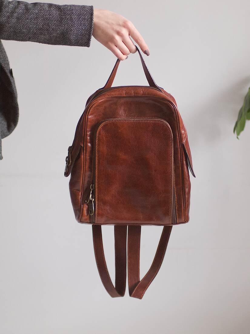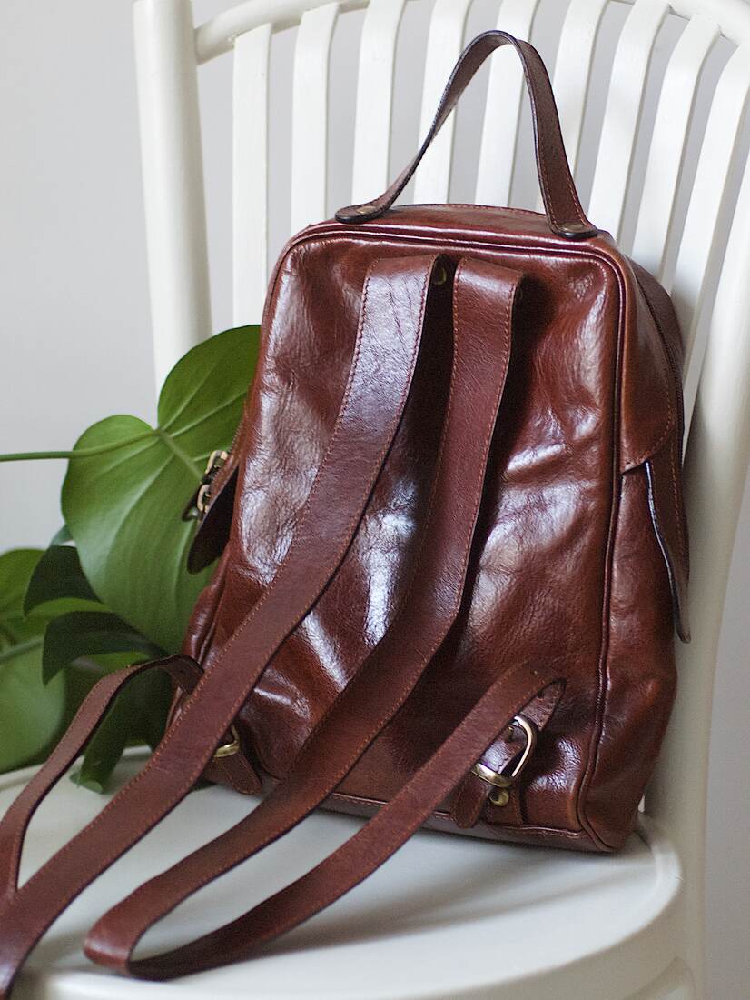 Wyjątkowy plecak renomowanej włoskiej marki The Old Angler. Wykonany ze skóry naturalnej, wykończony podszewką, w środku kieszonka zapinana na zamek + mała kieszonka na telefon. Bardzo dobry stan. Wymiary: 33×27 cm