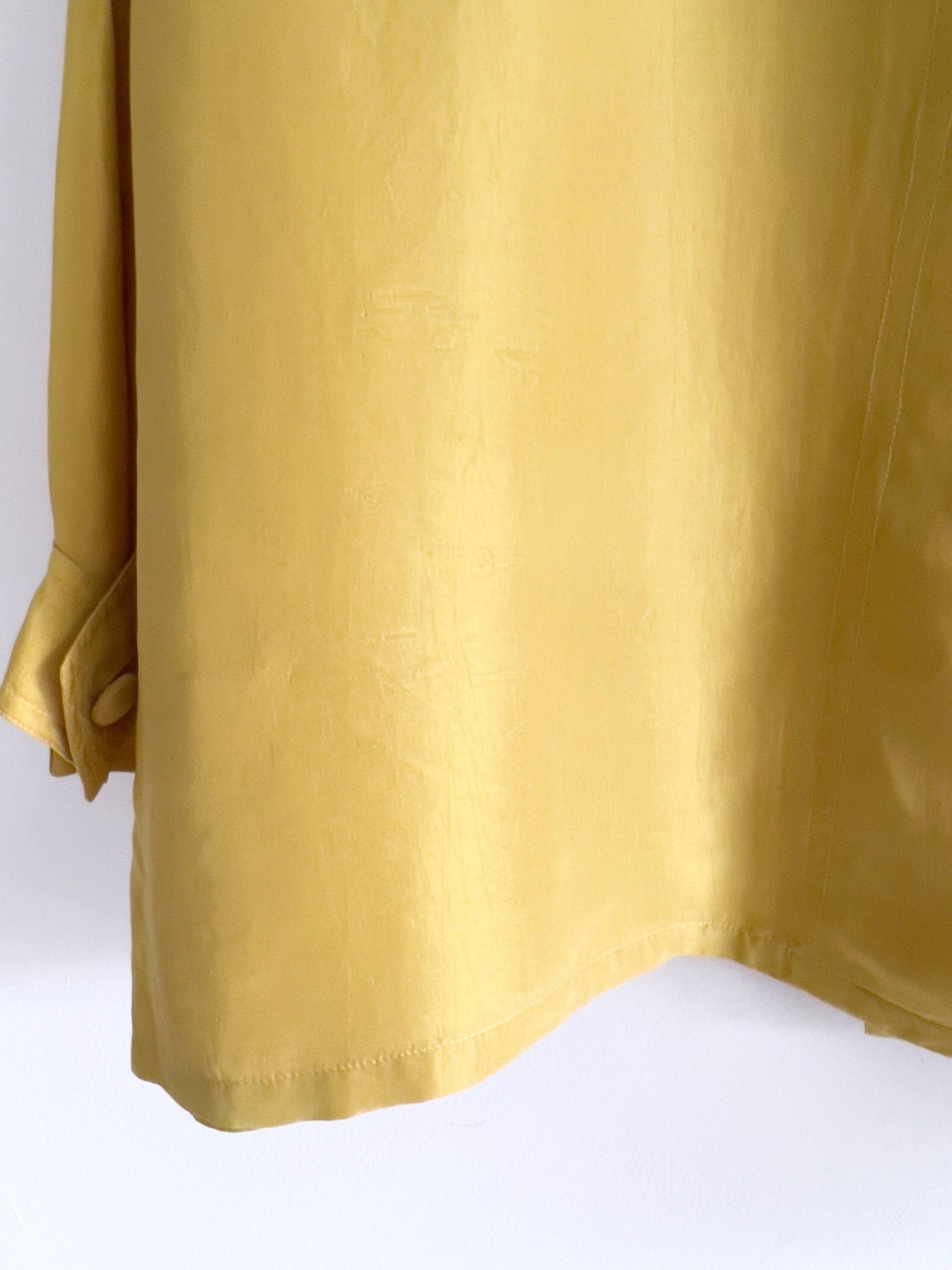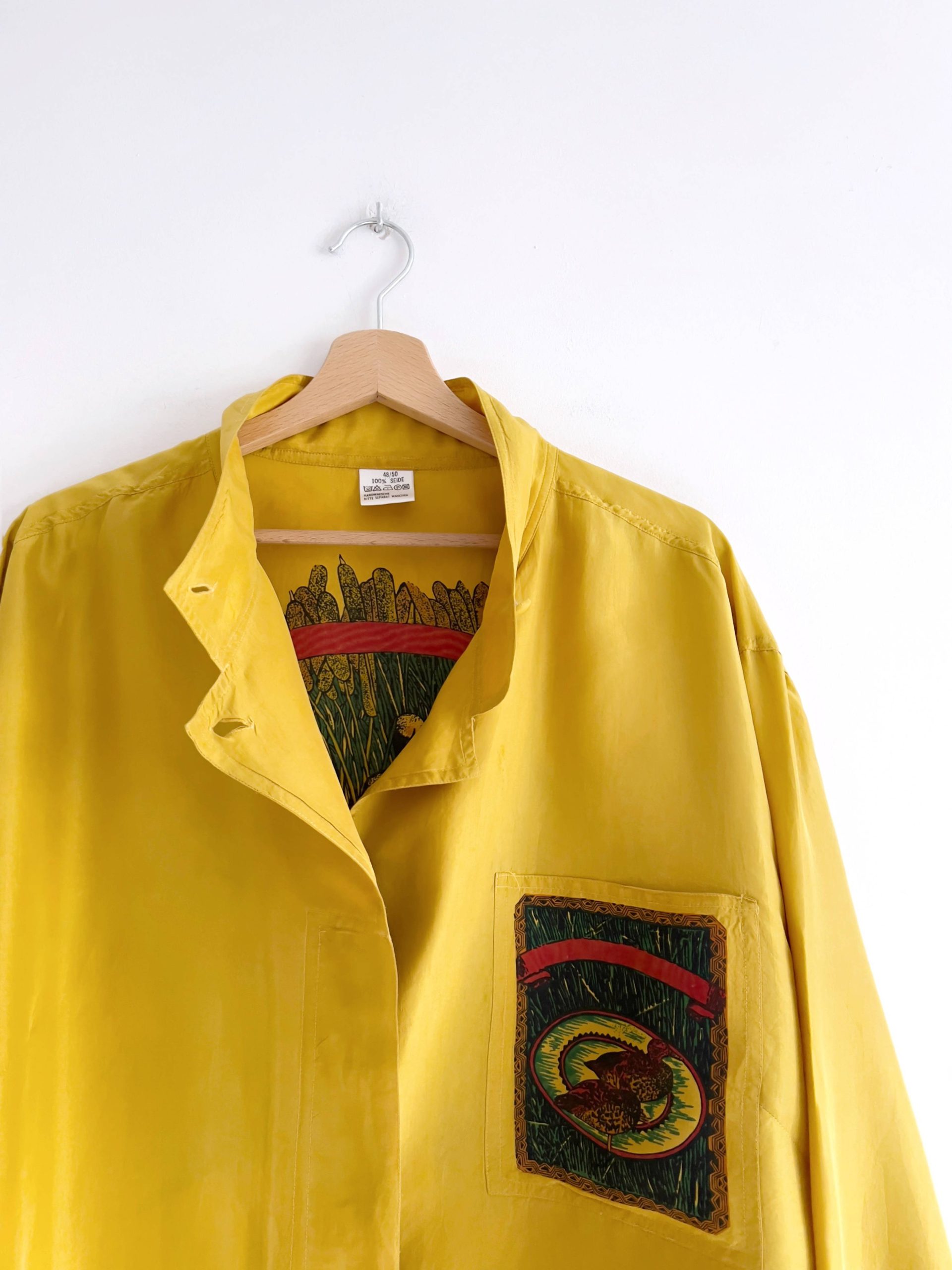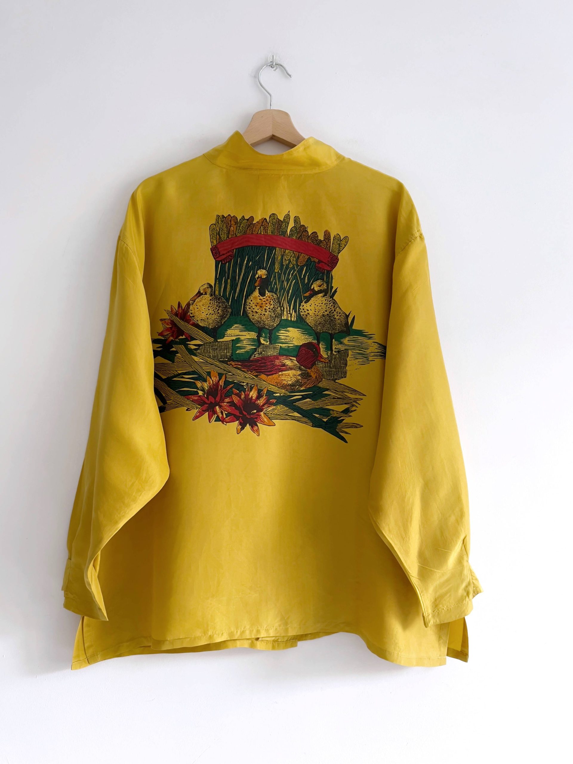 Unikatowa koszula vintage w 100% wykonana z jedwabiu. Rozmiar z metki 48/50, będzie pasować na XL, lub na mniejsze jako oversize. Koszula ma małe wgięcia materiału, pokazane na zdjęciu. Nie są widoczne w noszeniu.