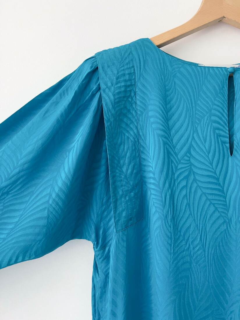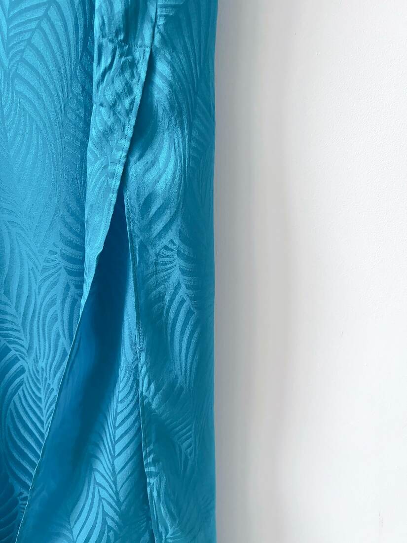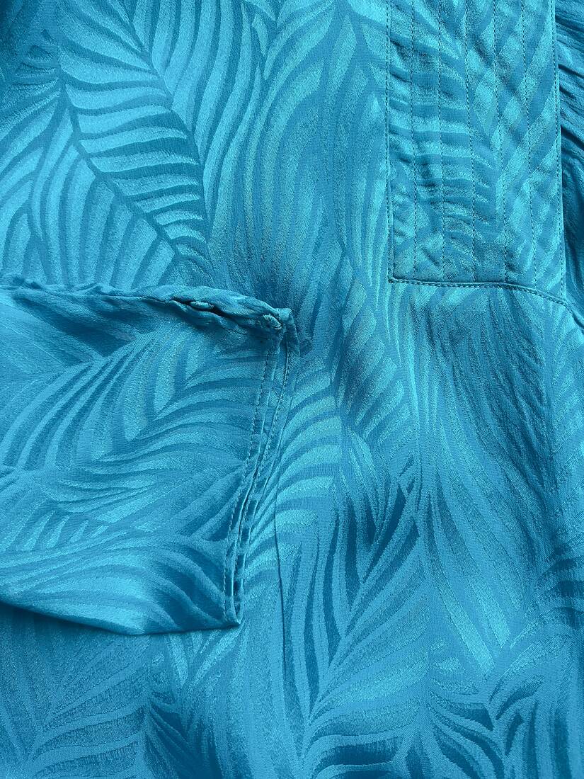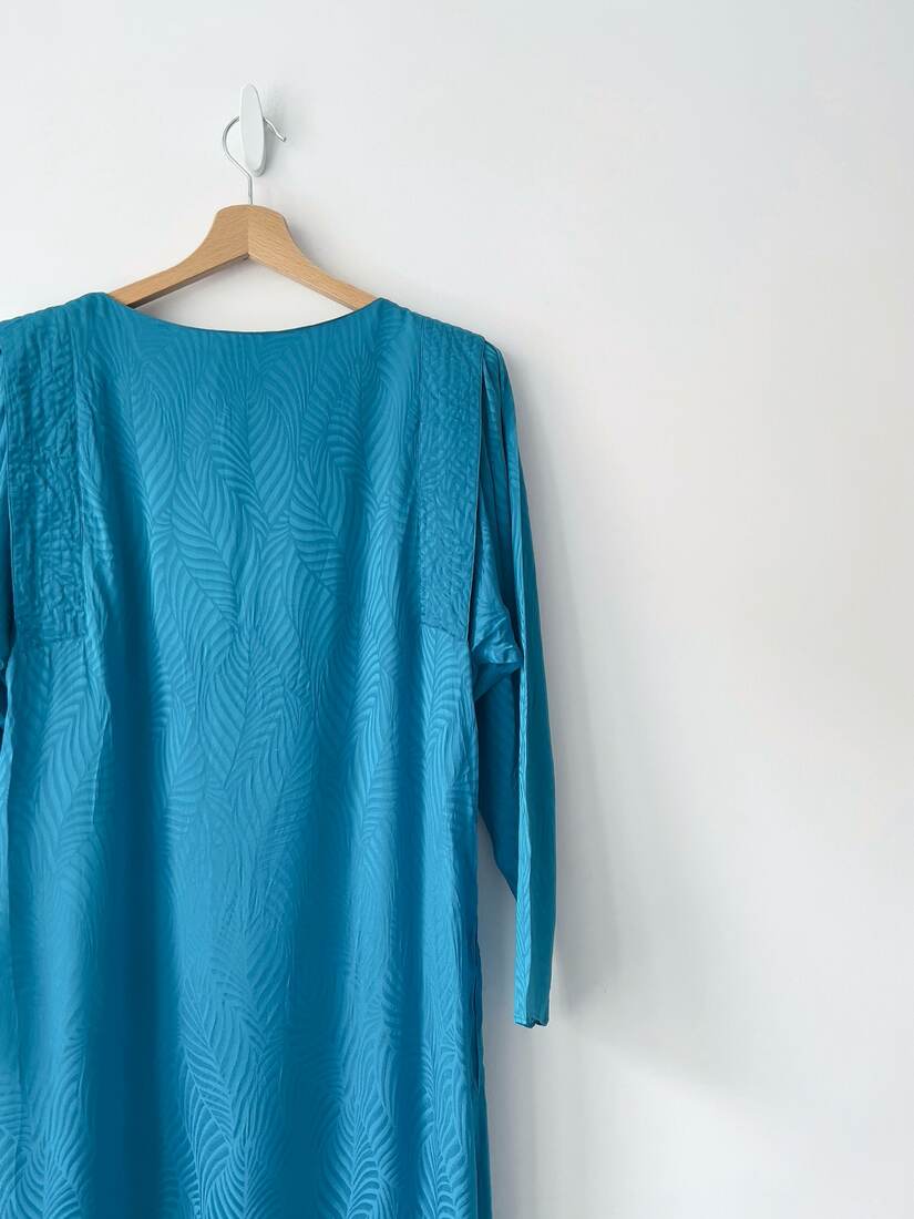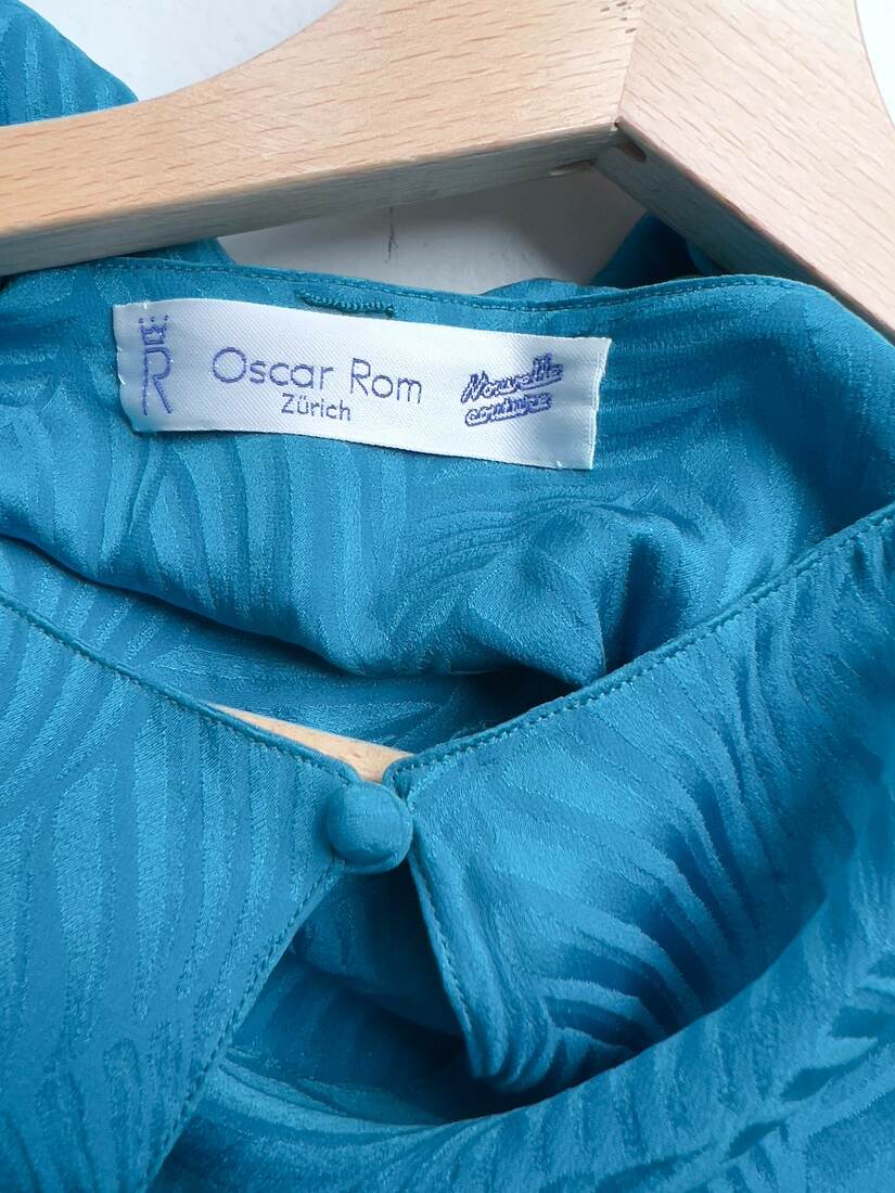 Unikatowa sukienka vintage, szyta w szwajcarskim atelier Oscar Rom. Wykonana z jedwabiu w tłoczone wzory. Prosty fason, ukryte kieszenie, na dole rozporek z jednej strony. W górnej części podszewka. Sukienka nie posiada metki z rozmiarem, proszę sugerować się wymiarami. Polecam na osobę wysoką.