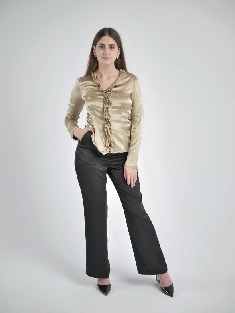 Vintage koszula w złocistym kolorze. Wykonana z miłej w dotyku jedwabnej satyny. Polecam na XS-S, bardzo dobry stan.