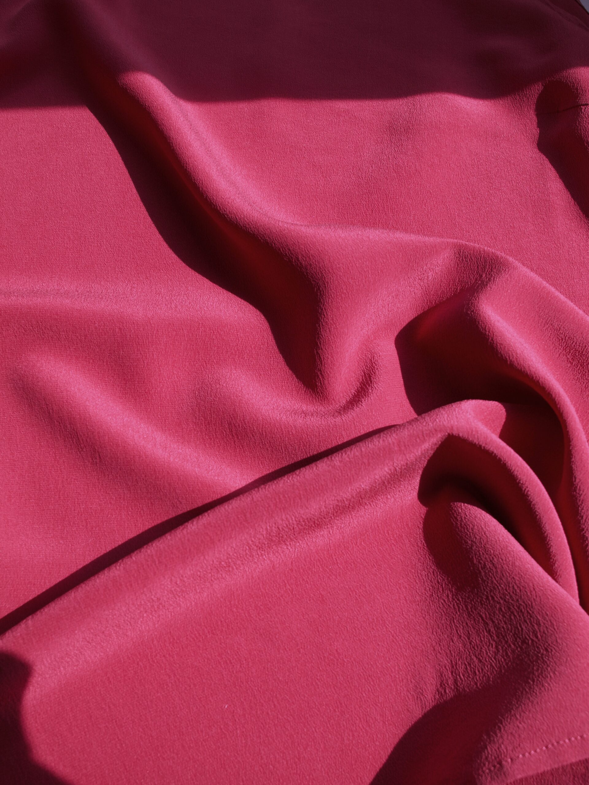 Jedwabna bluzka w intensywnym różowym kolorze. Skład: jedwab Stan: bez wad Szerokość w klatce 53 cm Długość całkowita 67 cm