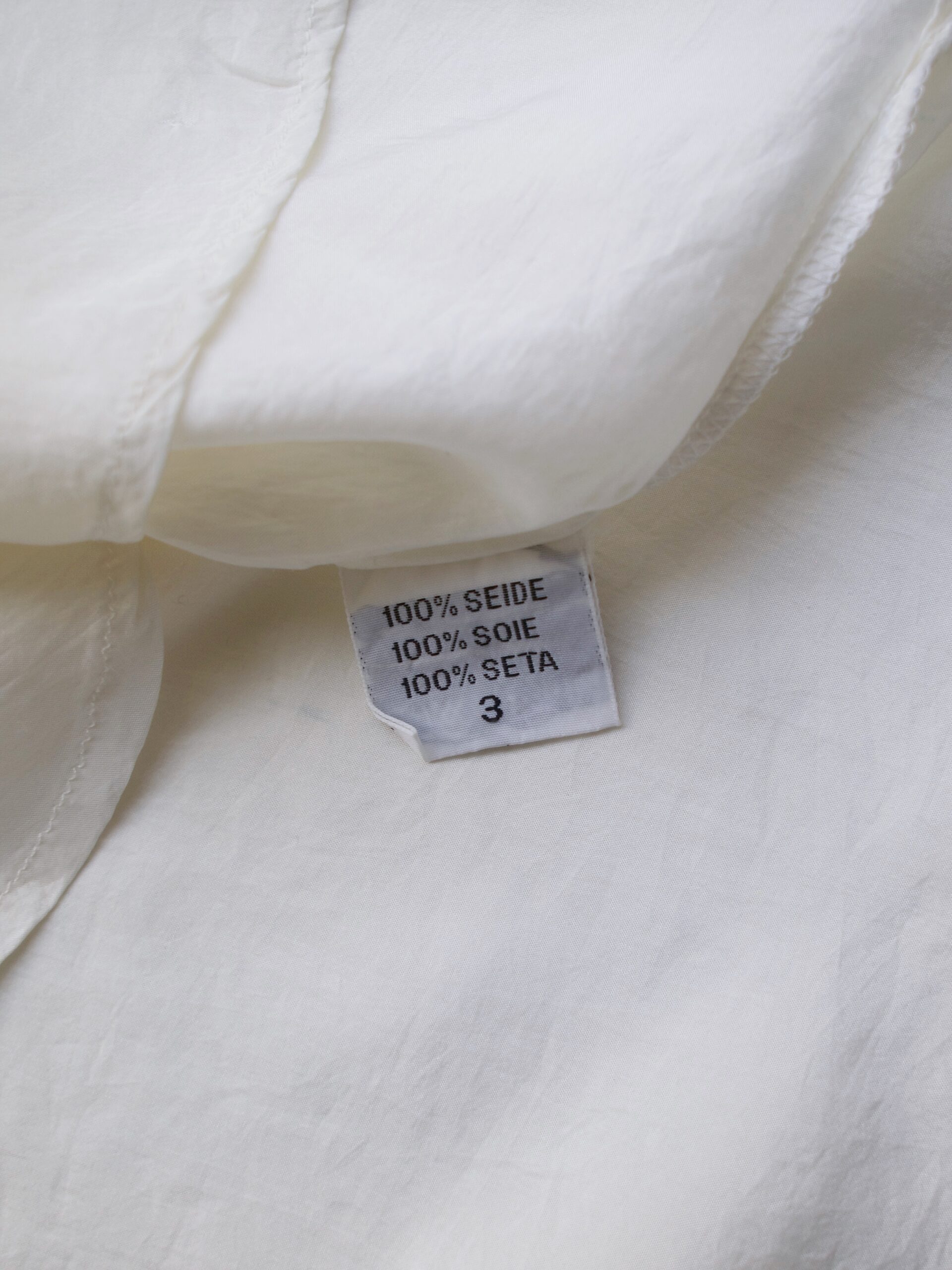 Kremowa koszula vintage z ozdobnymi guzikami i plisami na rękawach. Brak metki ze składem (prawdopodobnie poliester), materiał prawie nie gniecie się. Brak metki z rozmiarem, proszę sprawdzać wymiary. Bez wad.