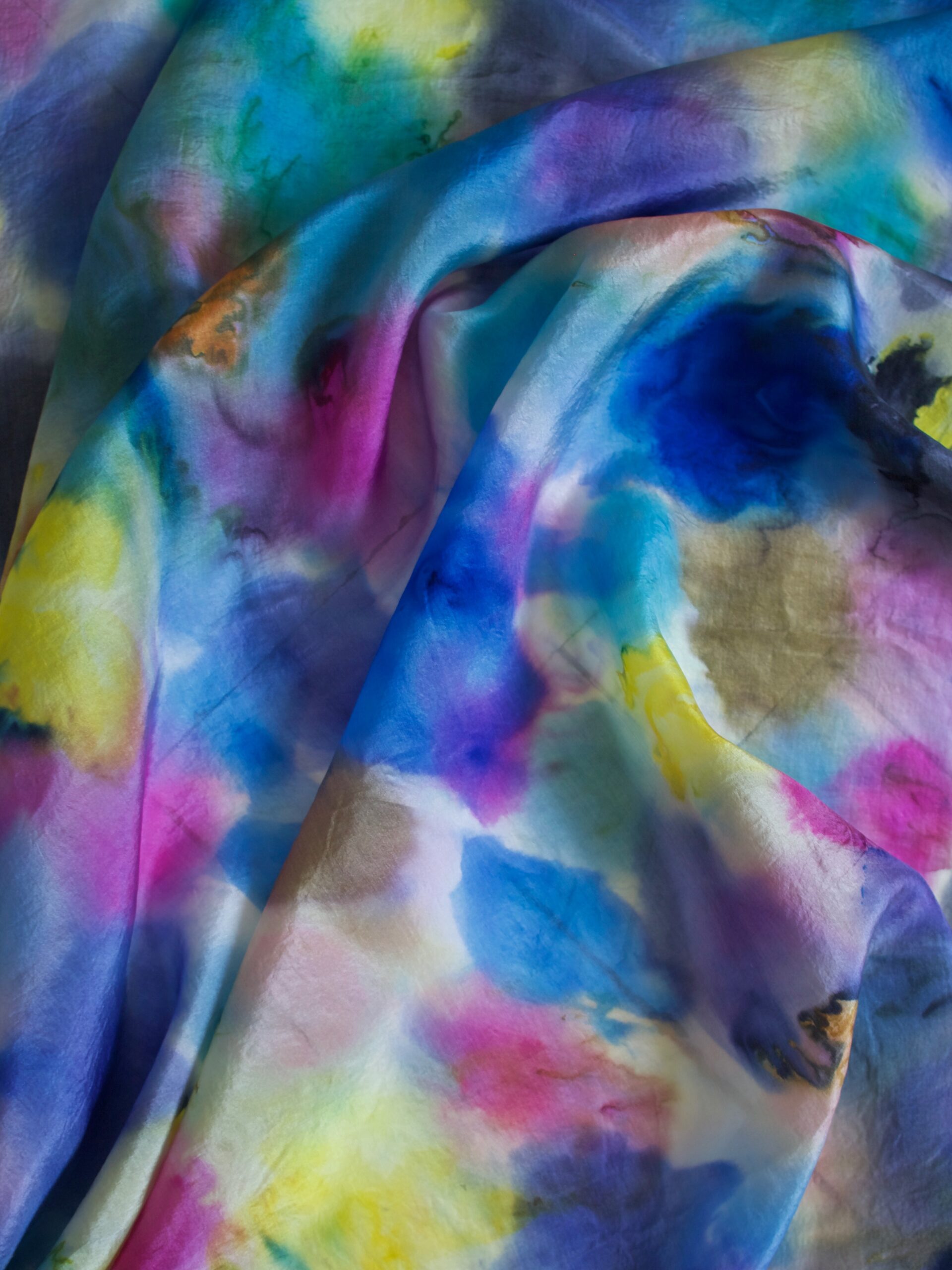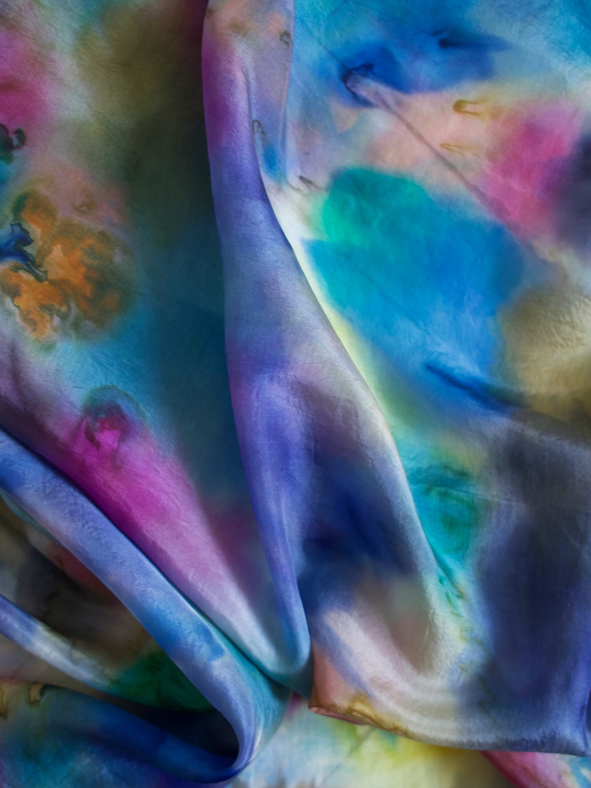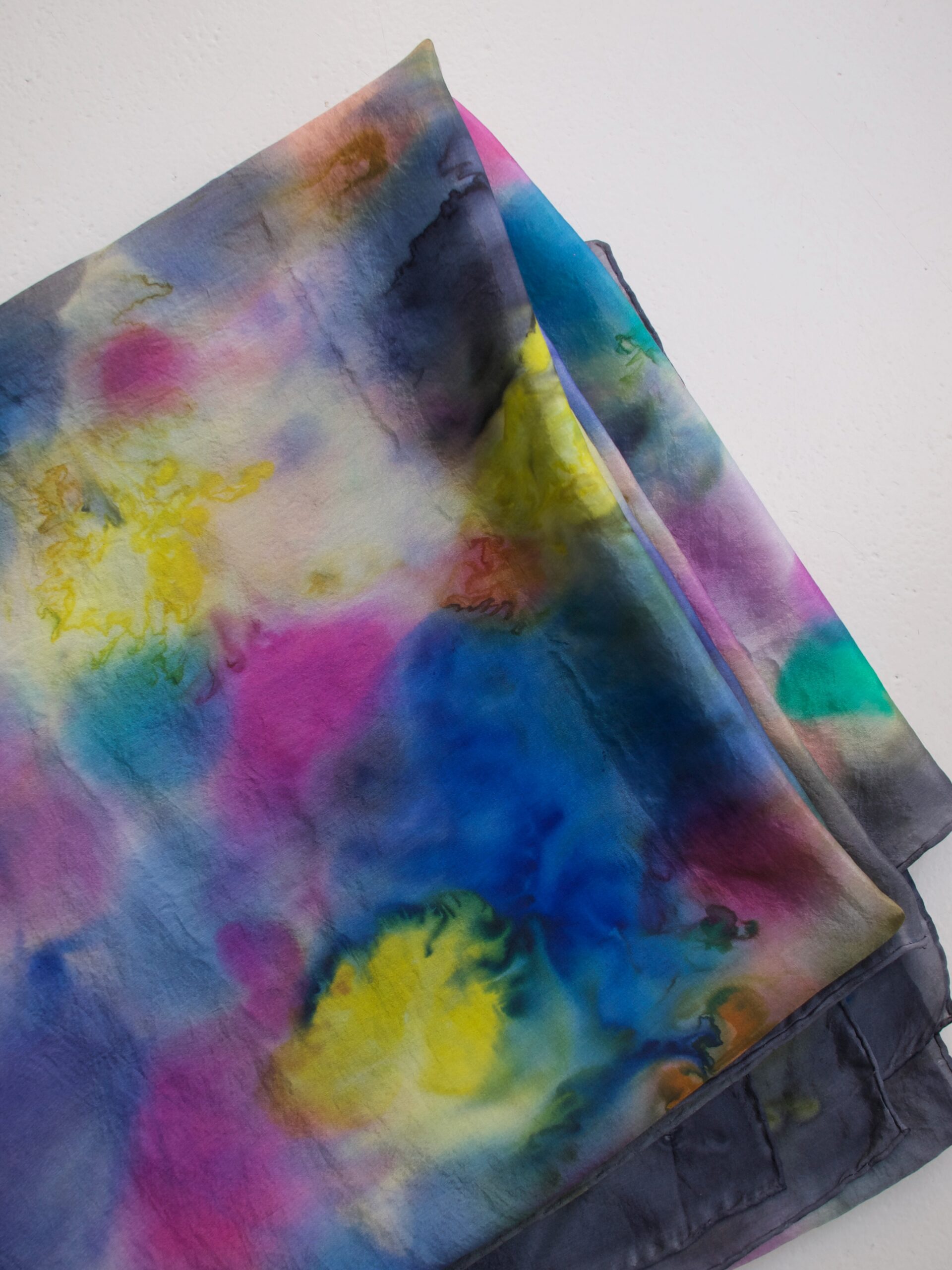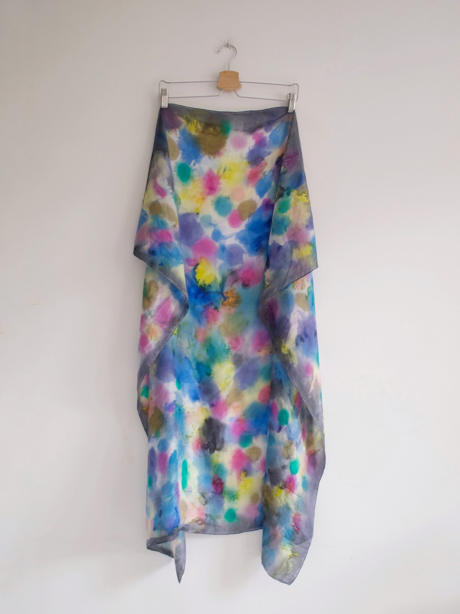 Bardzo duża jedwabna chusta. Ręcznie rolowana. Bardzo dobry stan.