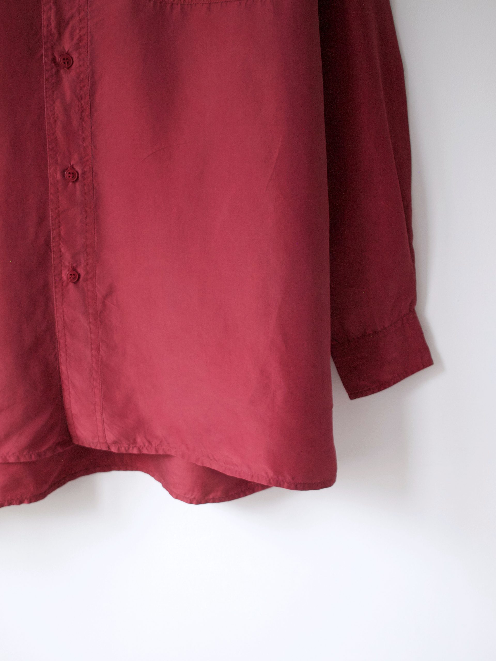 Jedwabna koszula vintage o bardzo luźnym fasonie. Rozmiar: M, bardzo luźny Skład: 100% jedwab Stan: bardzo dobry Szerokość w klatce 64 cm Długośćcałkowita 80 cm