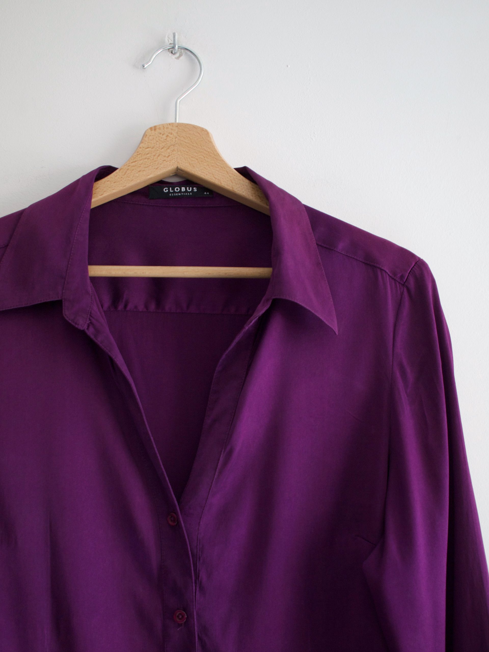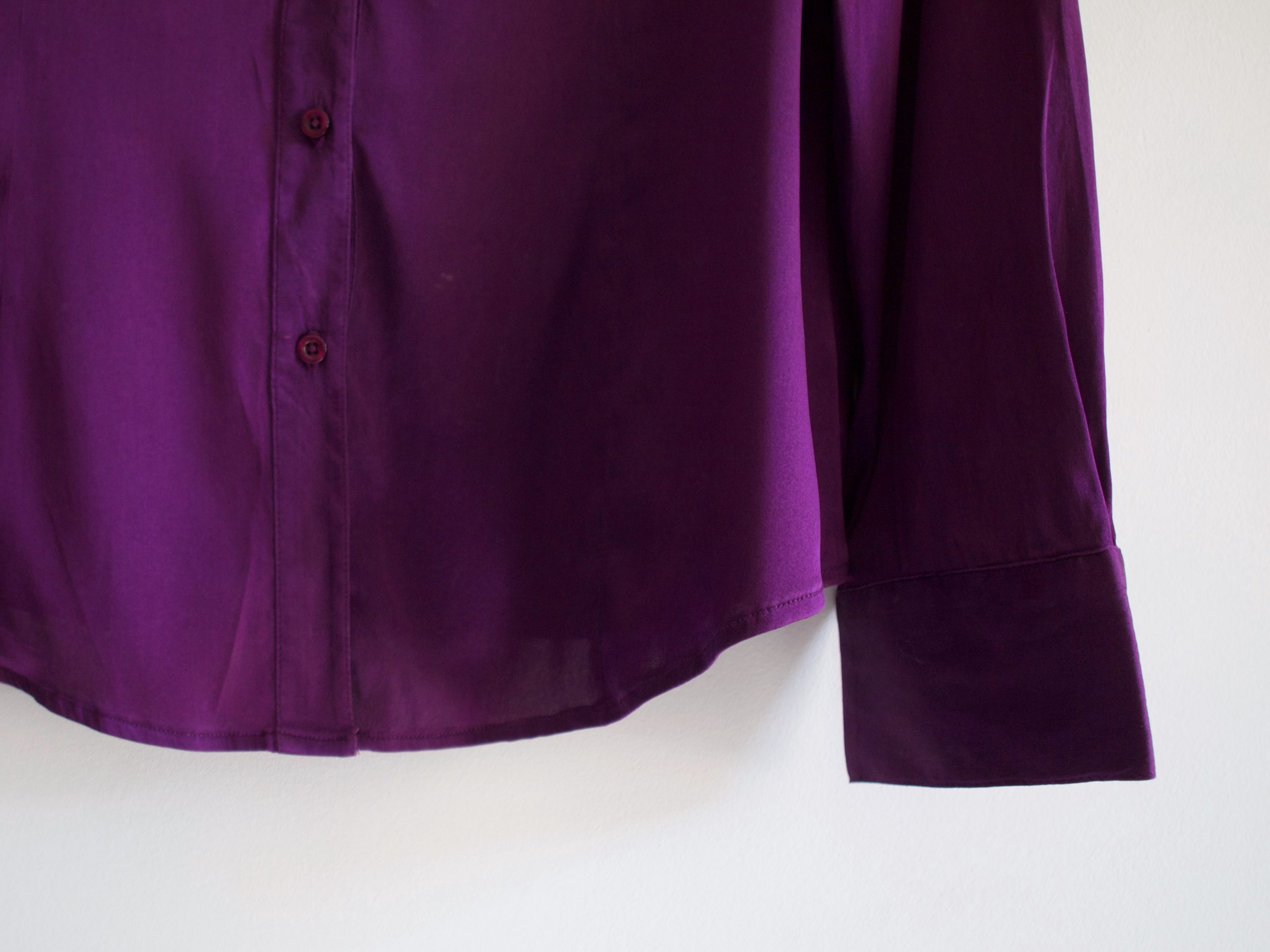 Koszula vintage wykonana z jedwabnej satyny. Rozmiar z metki 44, polecam na M-L lub. Koszula ma delikatne wyświecenie materiału, jest pokazane na zdjęciach, i nie jest bardzo widoczne w noszeniu.