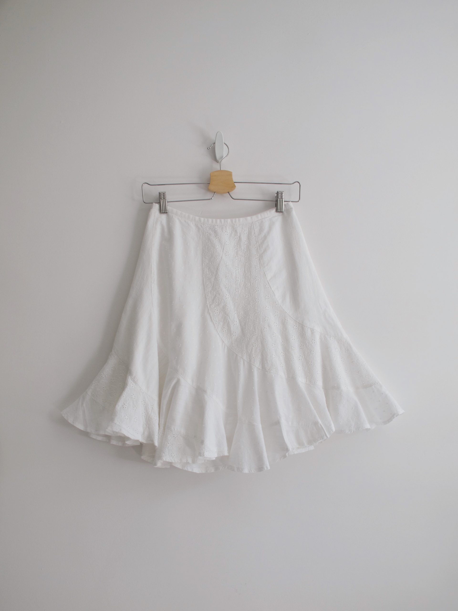 Spódnica vintage w stylu rustykalnym. Z podszewką. Rozmiar z metki: 34/36 Skład: 100% bawełna Stan: bez wad Szerokość w pasie 32 cm Długość całkowita 55 cm