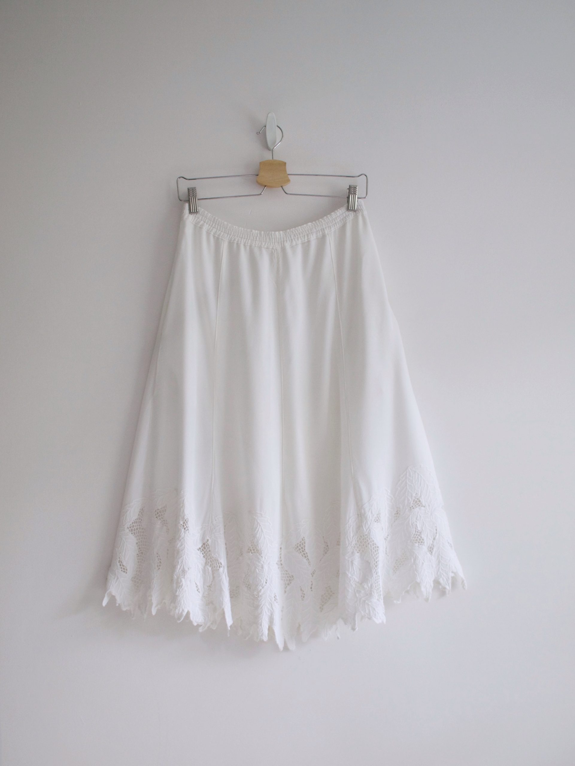 Spódnica vintage o kroju A-line. W pasie posiada elastyczną gumkę oraz kieszenie. Rozmiar z metki: brak Skład: brak metki, wiskoza Stan: bez wad Szerokość w pasie 35-43 cm Długość całkowita 75 cm