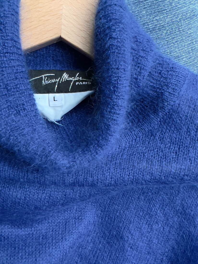Unikatowy sweter vintage projektanta Thierry Mugler. Wykonany z mieszanki alpaki oraz kid moheru, dokładny procentowy skład nie jest czytelny. Rozmiar z metki L, będzie pasować również na S i M jako delikatnie luźny. Bardzo dobry stan.