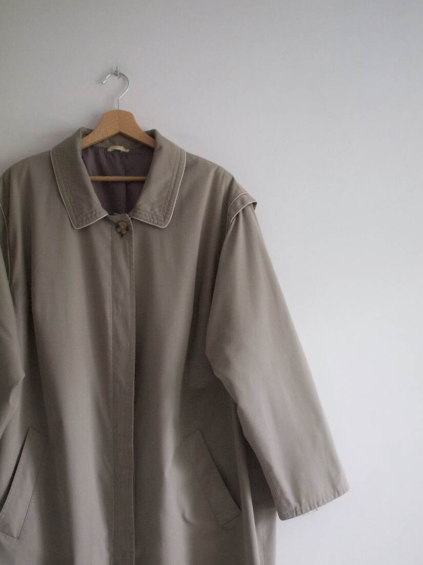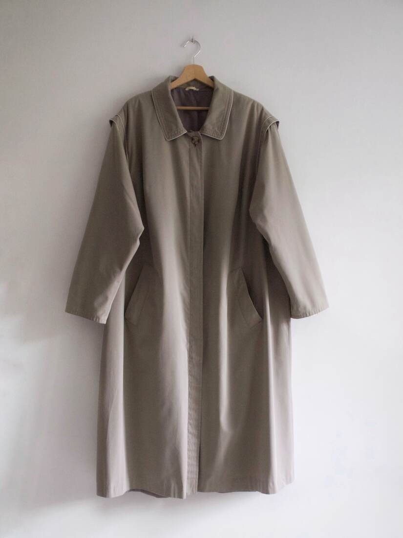 Płaszcz vintage o obszernym kroju. Zapinany na ukryte guziki, z podszewką, bez paska. Polecam na XL, lub jako mocny oversize. Bez wad.