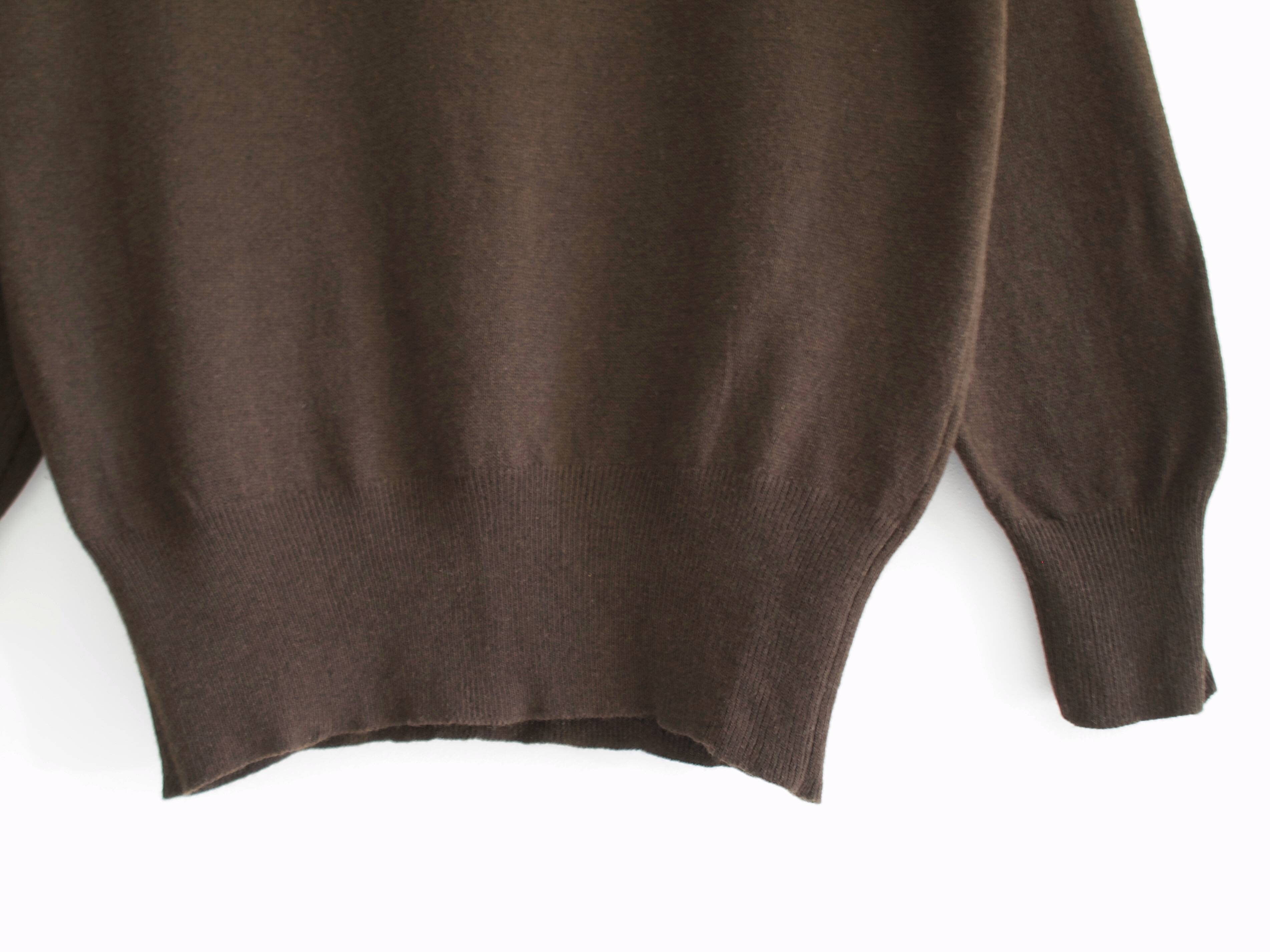 Klasyczny sweter M&S z dekoltem w serek. Skład to 100% kaszmir, bardzo dobry stan, jest minimalnie sfilcowany, nie jest to zauważalne, po prostu jest trochę sztywniejszy.