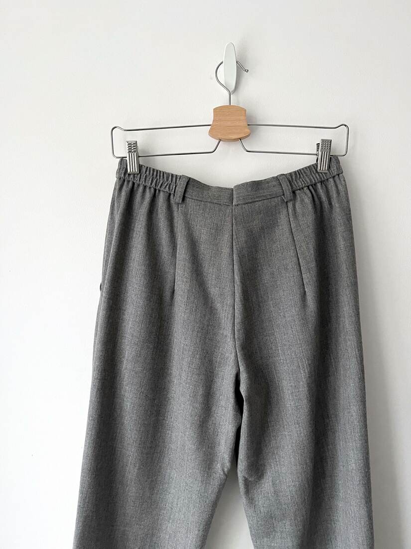 Wełniane spodnie vintage w kolorze camelowym. Zawężane w talii, dwie kieszeni, nogawki zawężane ku dołu, z tyłu małe elastyczne gumki. Rozmiar z metki 38, wymiary poniżej. Bez wad.