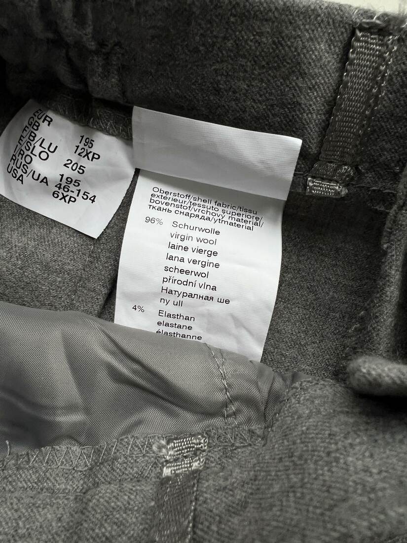Wymiary spodni: szerokość w pasie 35 cm, szerokość w biodrach 50 cm, długość nogawki od kroku 71 cm, długość całkowita 96 cm. Wymiary marynarki: szerokość w ramionach 37,5, szerokość w klatce 46 cm, długość całkowita 76 cm.