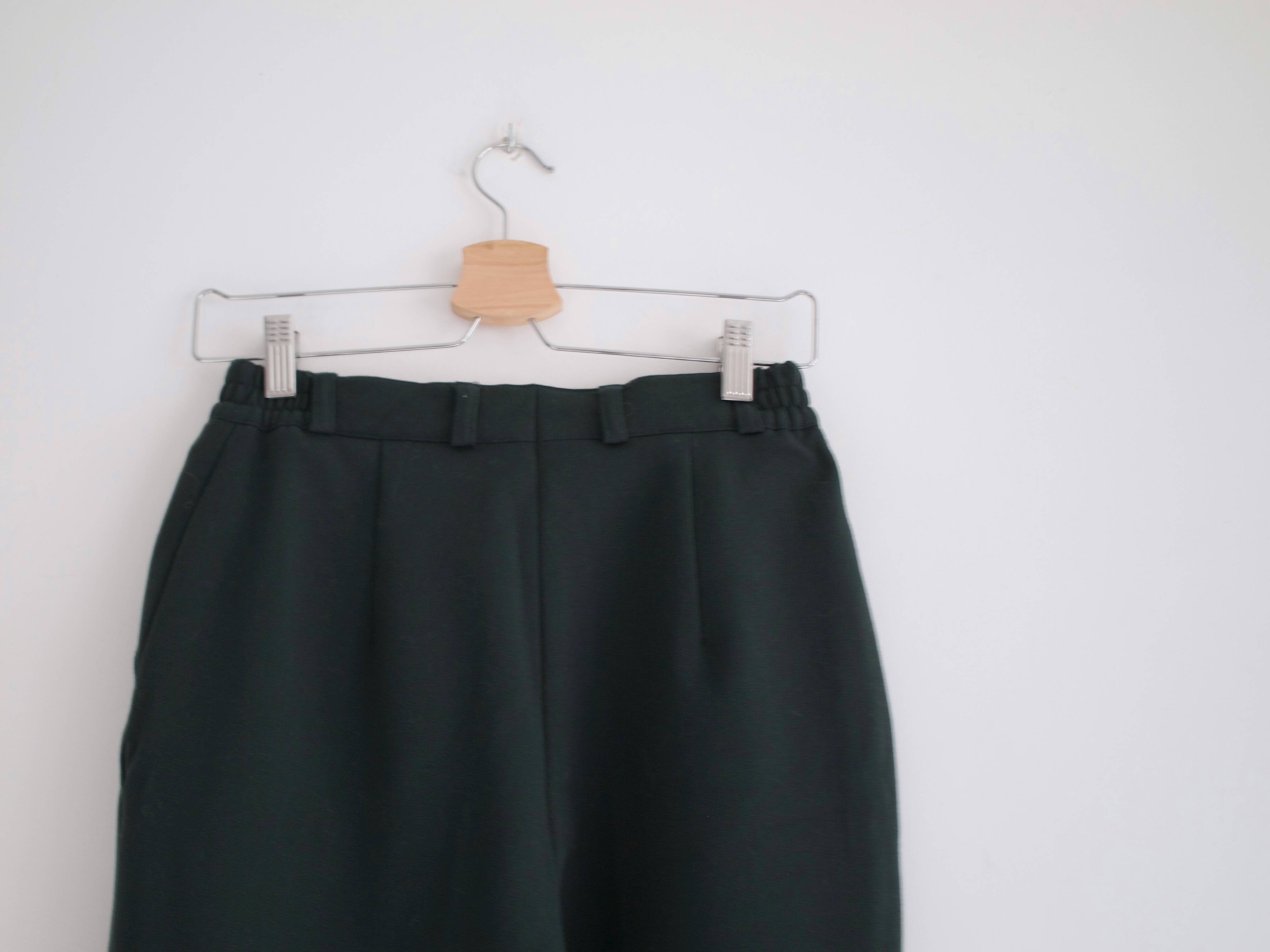 Spodnie vintage w kolorze ciemnej zieleni. Wykonane z tkaniny z dodatkiem wełny.