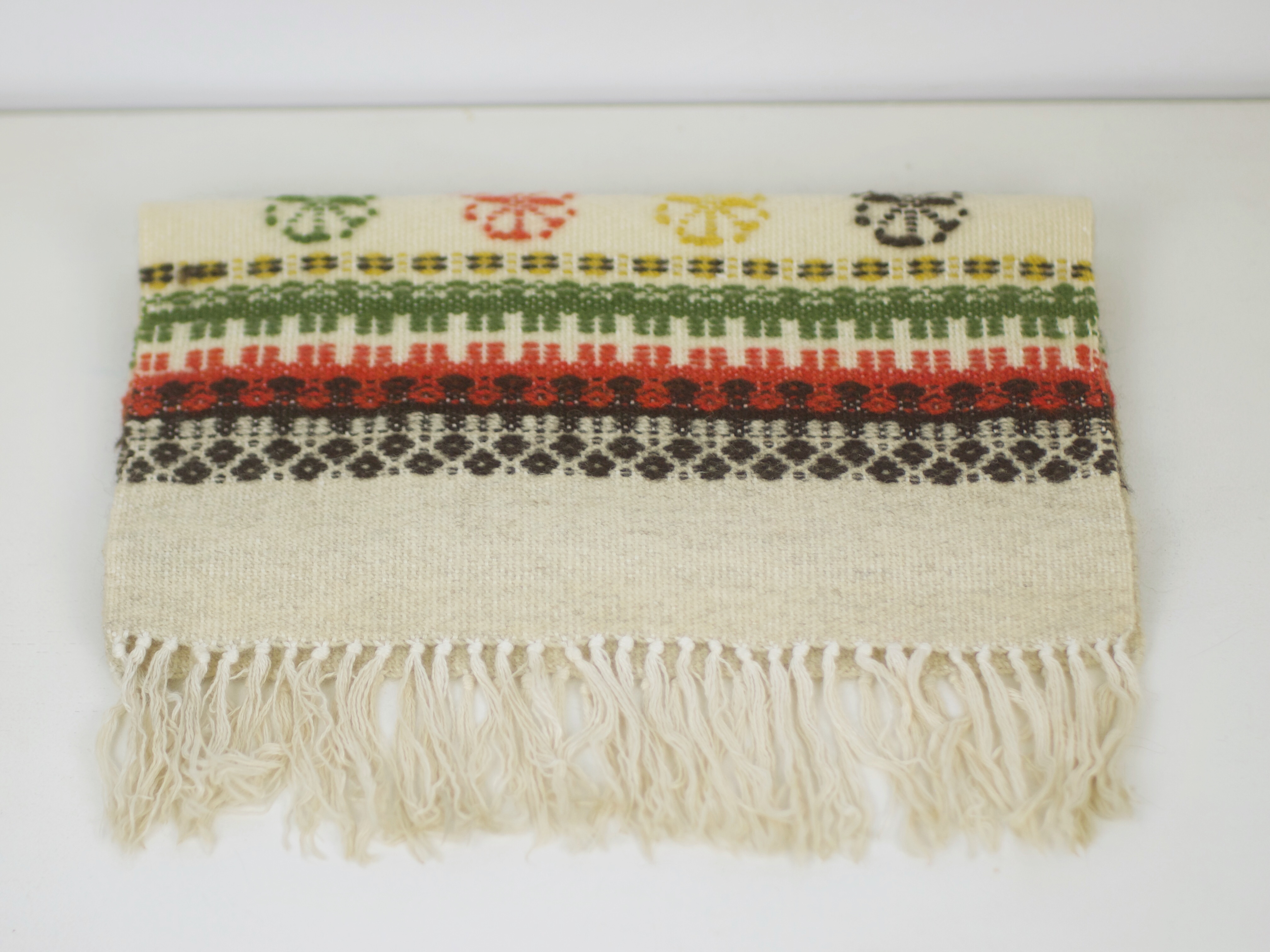 Mały wełniany dywanik vintage w rustykalnym stylu. Po praniu, bez wad. Wymiary bez frędzli 82*36 cm.