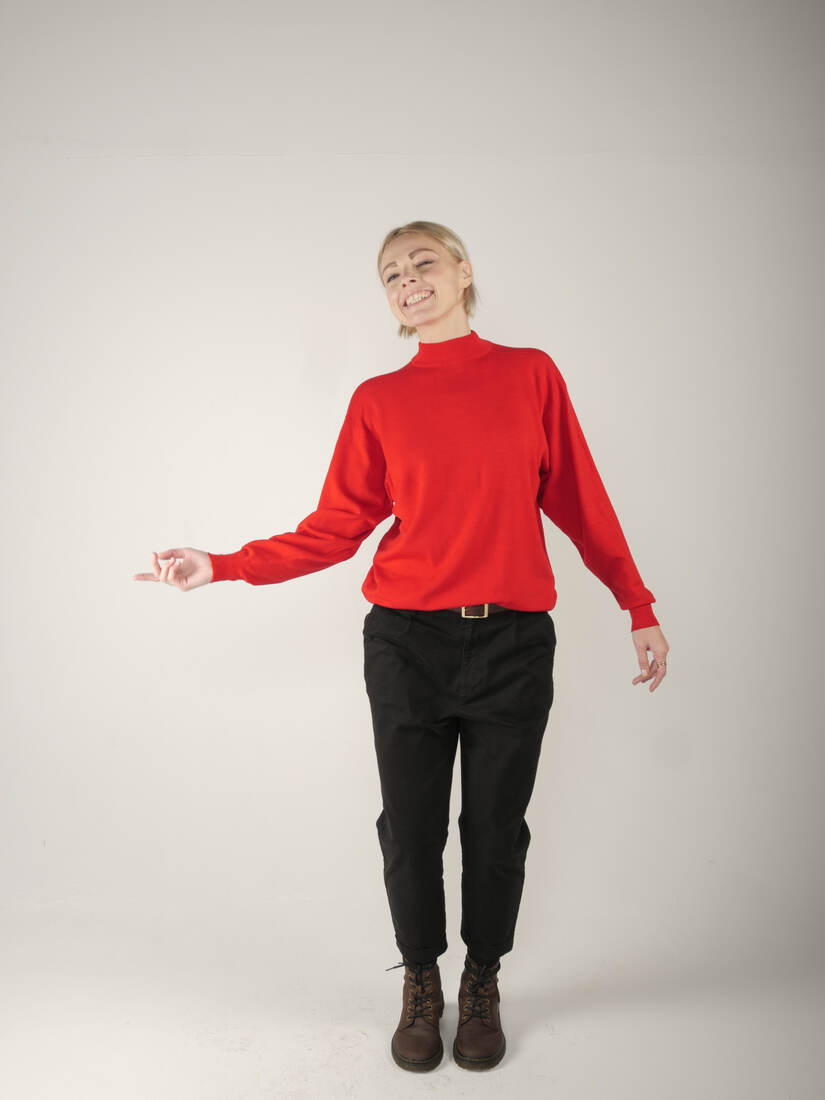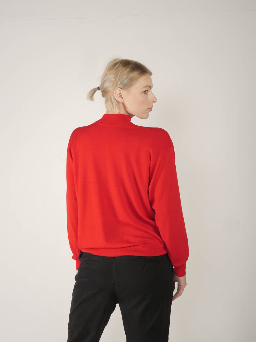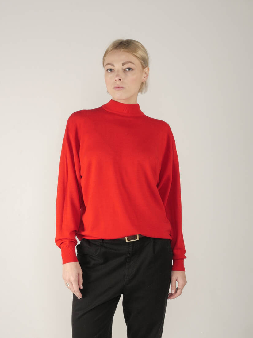 Sweter jest wykonany w 100% z wysokogatunkowej miękkiej wełny dziewiczej, made in UK. Brak etykiety z rozmiarem, ma nieco obniżone ramiona, będzie dobry na m/l, lub jako overize. Modelka ma 175 cm wzrostu. Idealny stan.