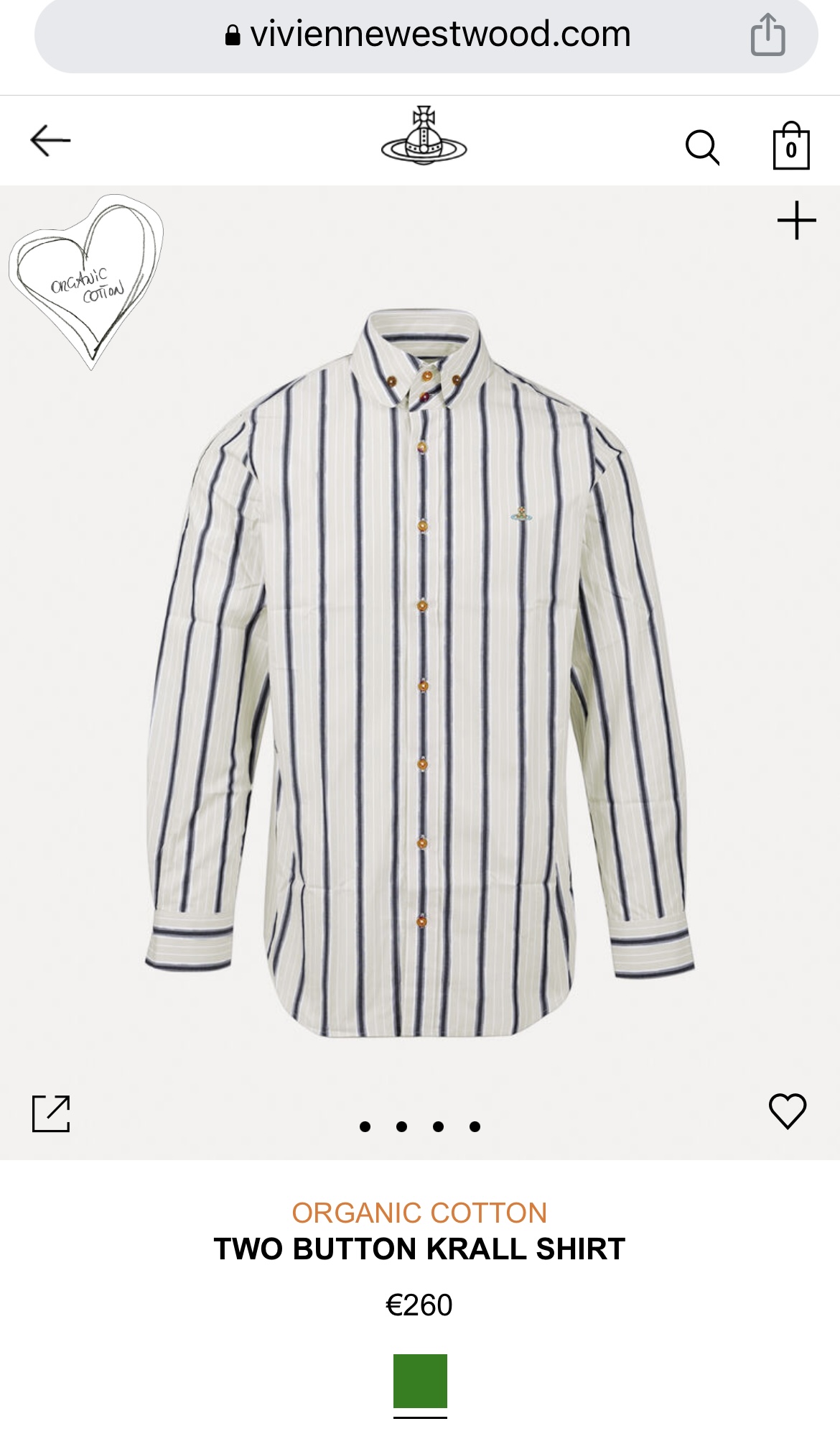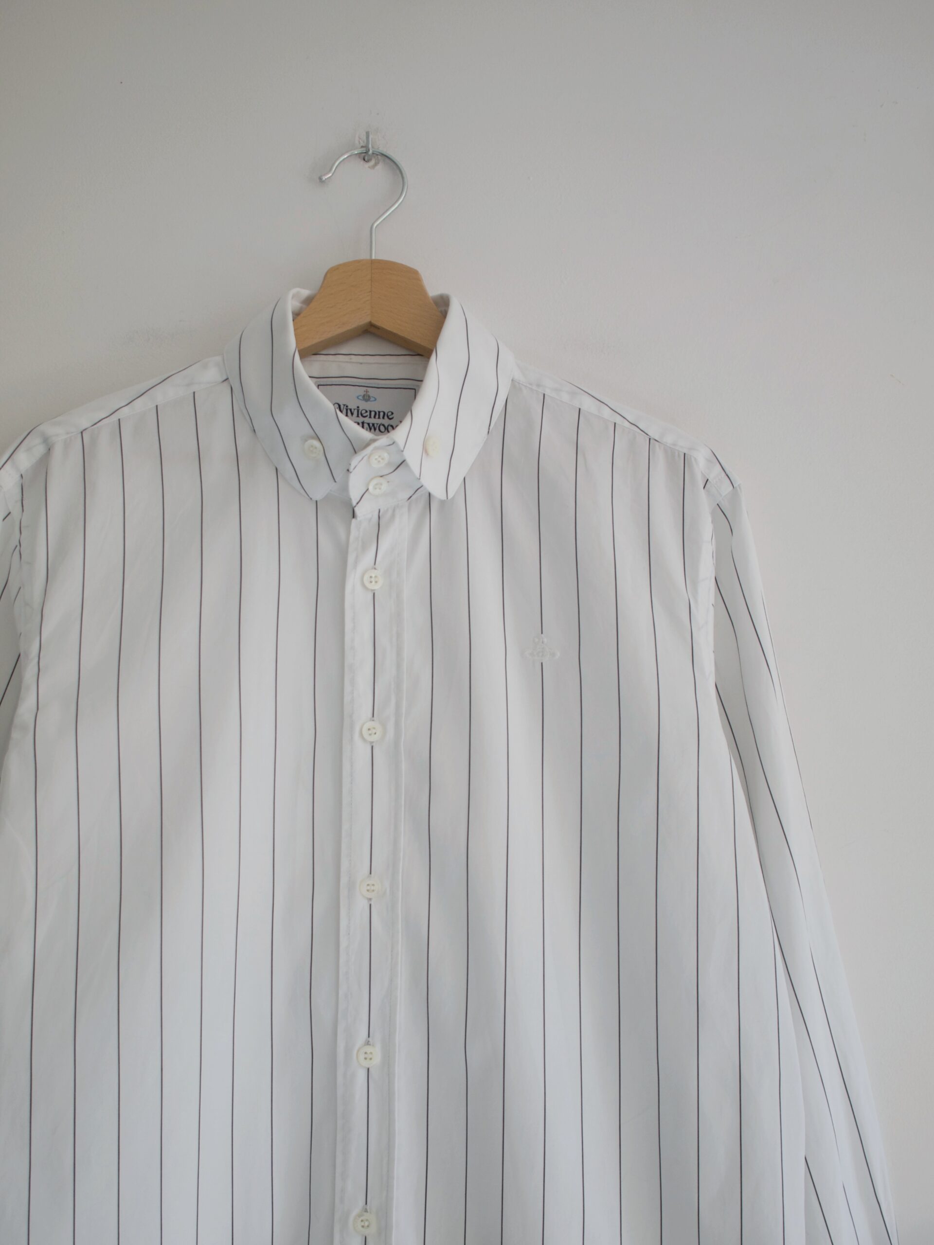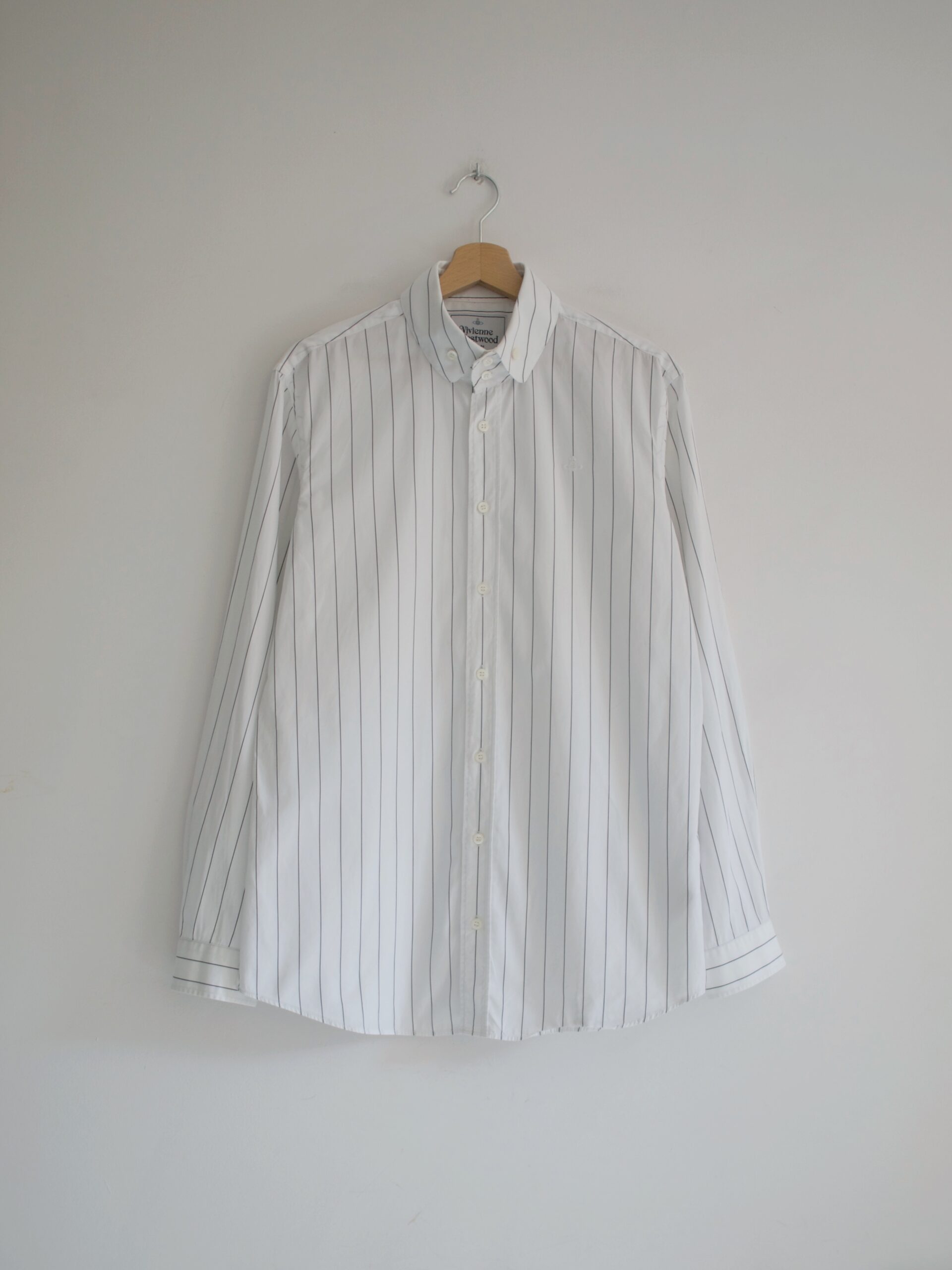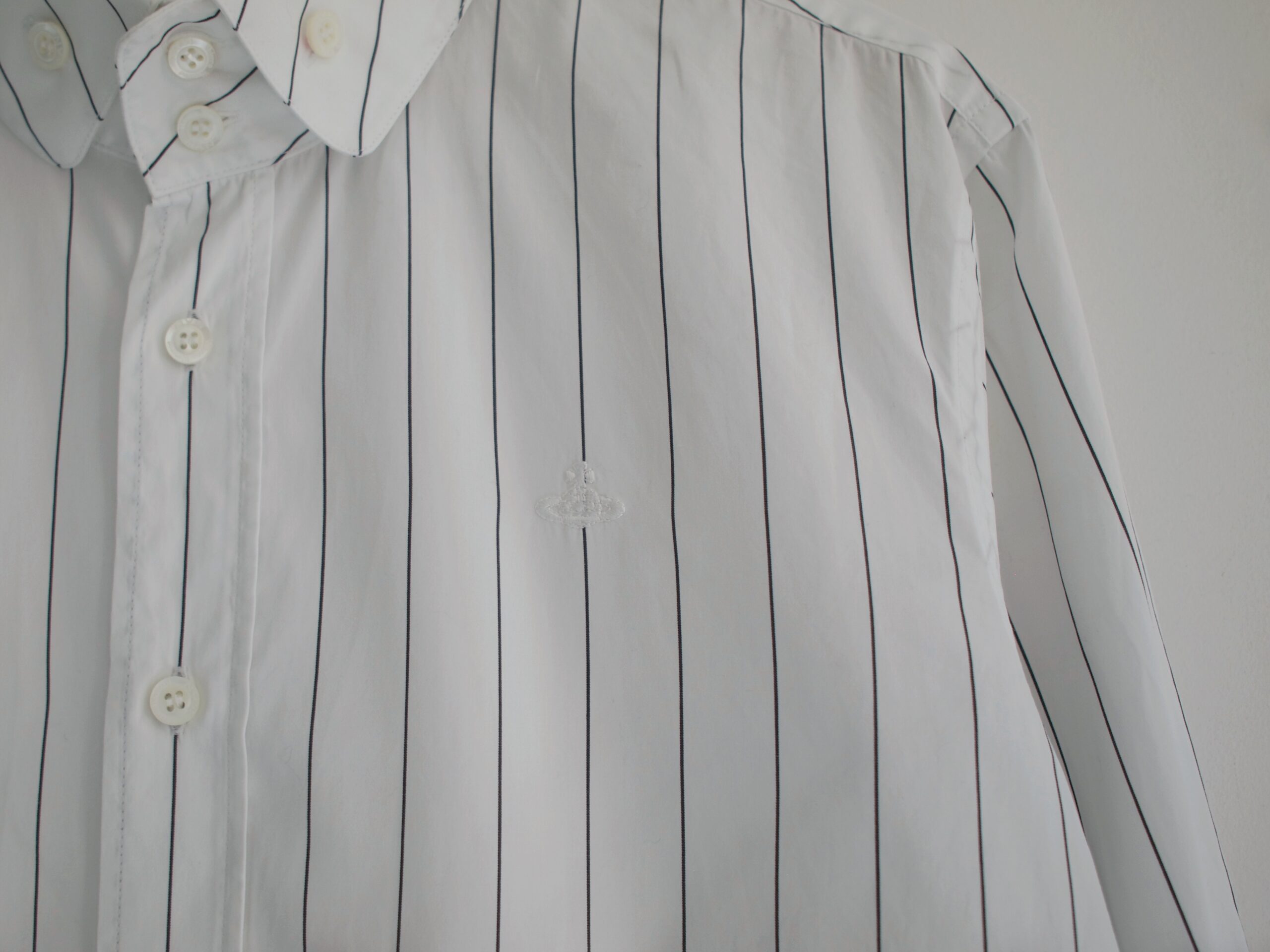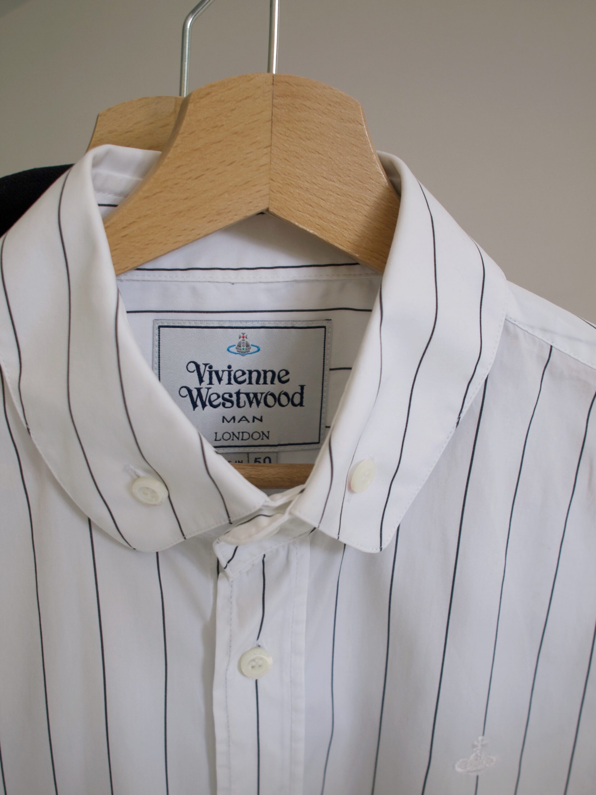 Koszula kultowej brytyjskiej projektantki Vivienne Westwood. Na piersi zdobiona haftowanym logiem marki, sygnowane guziki. Model męski.