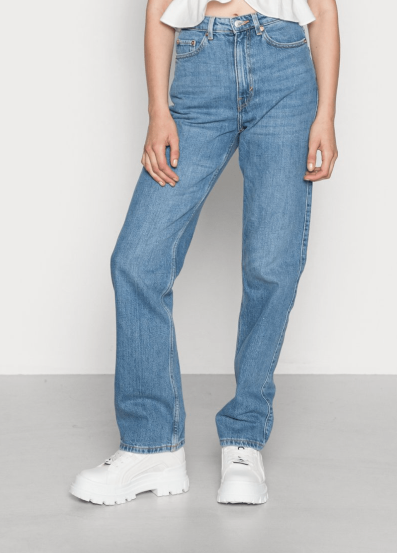 Jeansy skandynawskiej marki Weekday, model rowe extra high straight jeans. Rozmiar z metki 29, polecam na M. Idealny stan.
