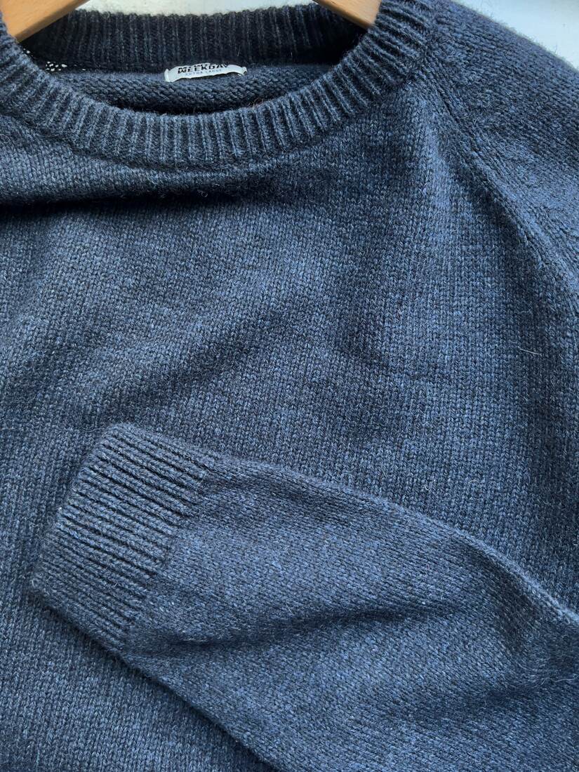Melanżowy sweter marki Weekday. Wykonany z wełny z dodatkiem lyocellu oraz poliamidu. Rozmiar z metki XL, bez wad.