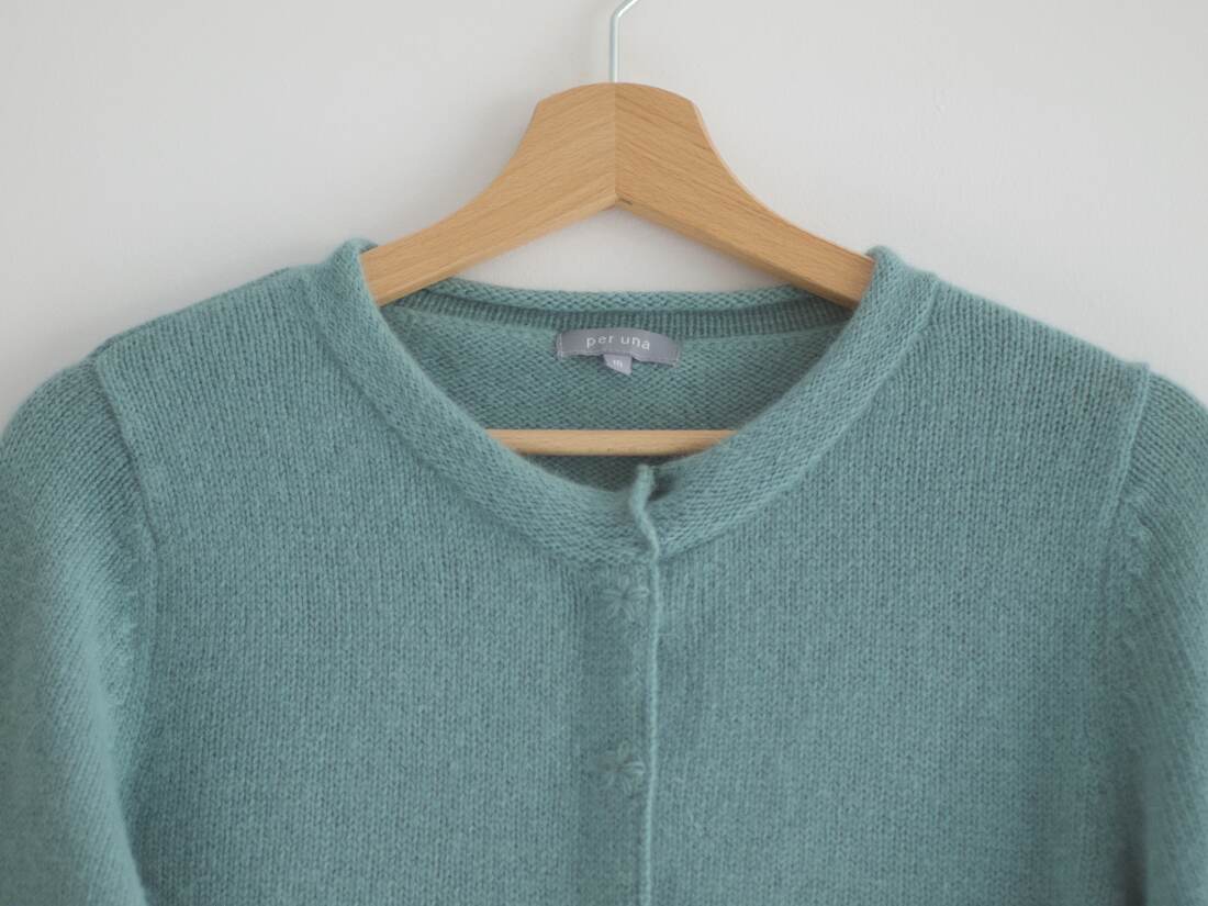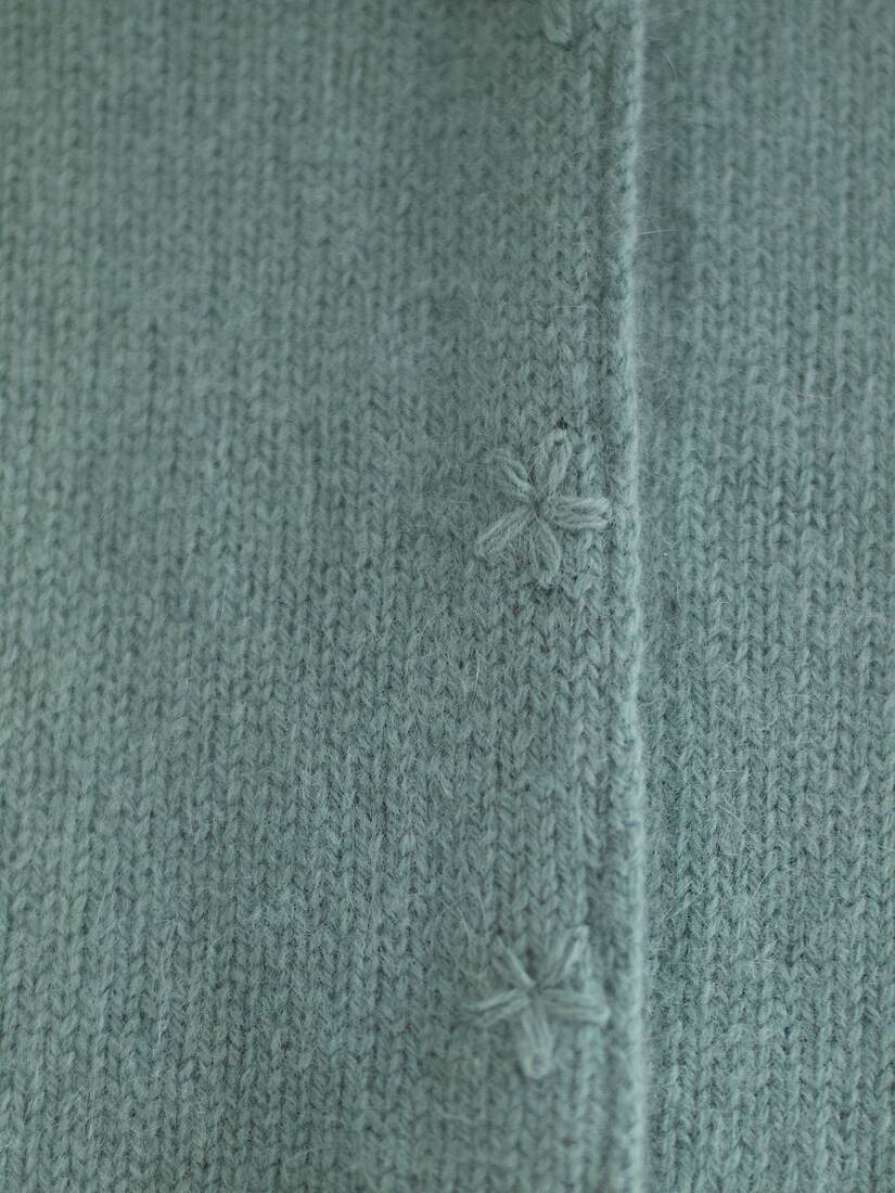 Kardigan vintage w stonowanym zielonym kolorze. Krótszy krój, idealny do spodni z wysokim stanem. Rozmiar z metki M, bez wad.