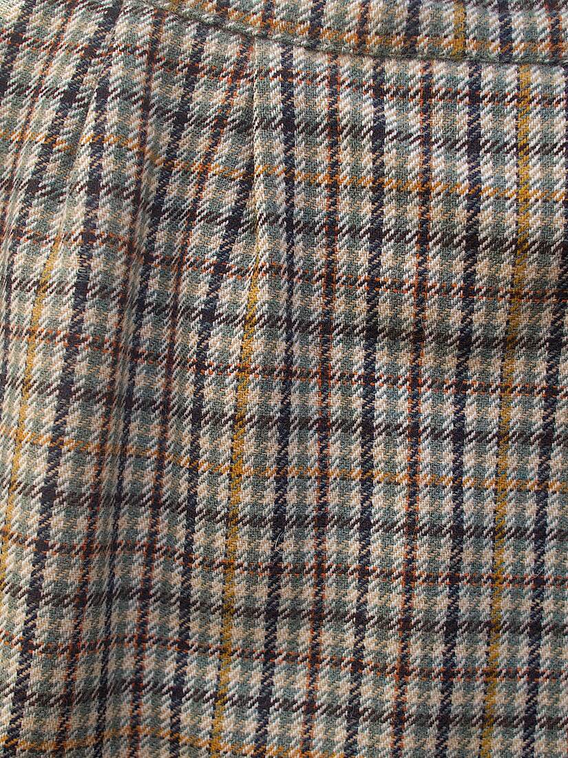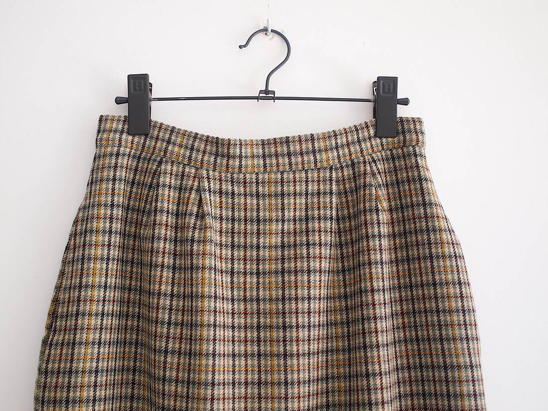 Wełniana spódnica w kratę z kieszeniami. Rozmiar z metki 38, będzie pasować także na S. Z tyłu przy dolnem szwie ma milimetrowe zacerowanie, poza tym brak wad.