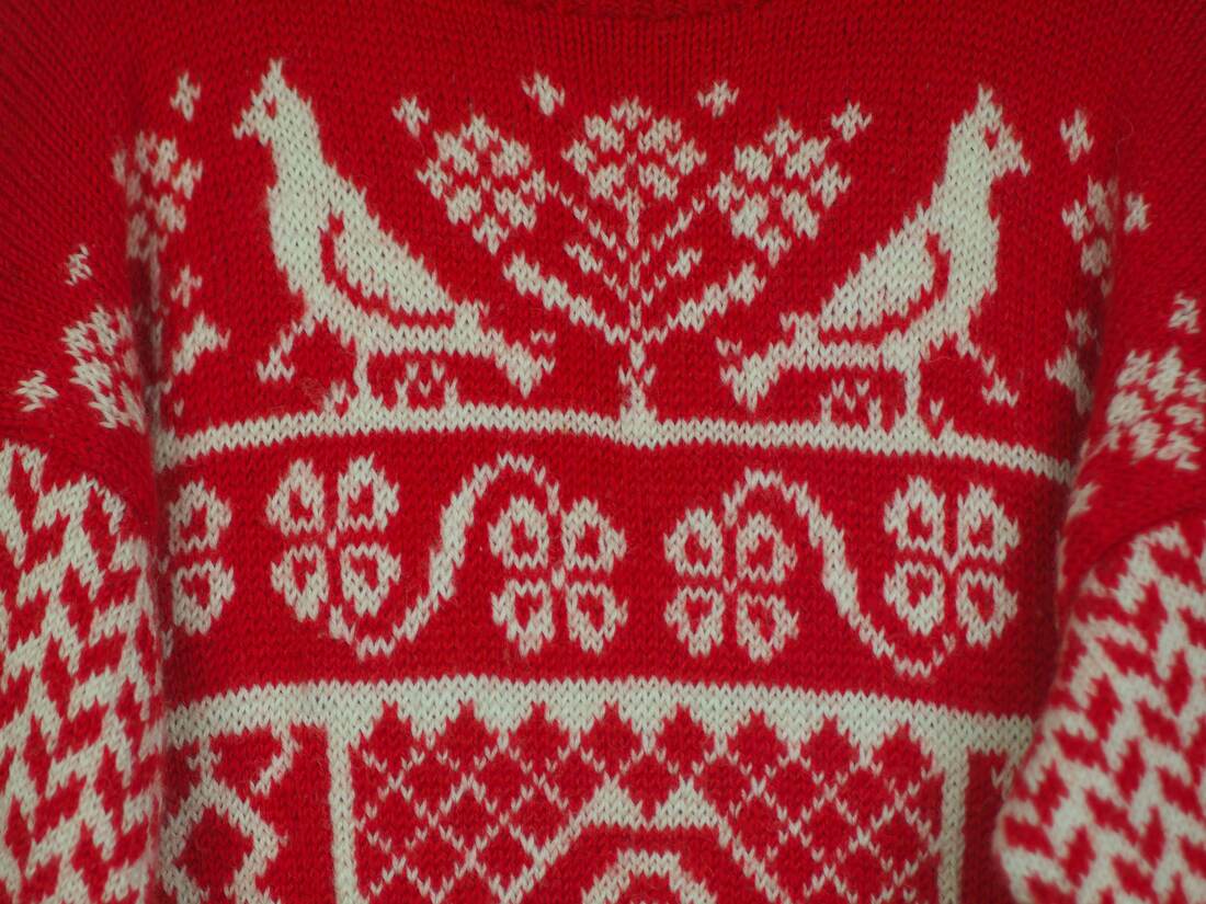 Norweski wełniany sweter vintage we wzory. Luźny fason, okrągły dekolt. Bez wad.