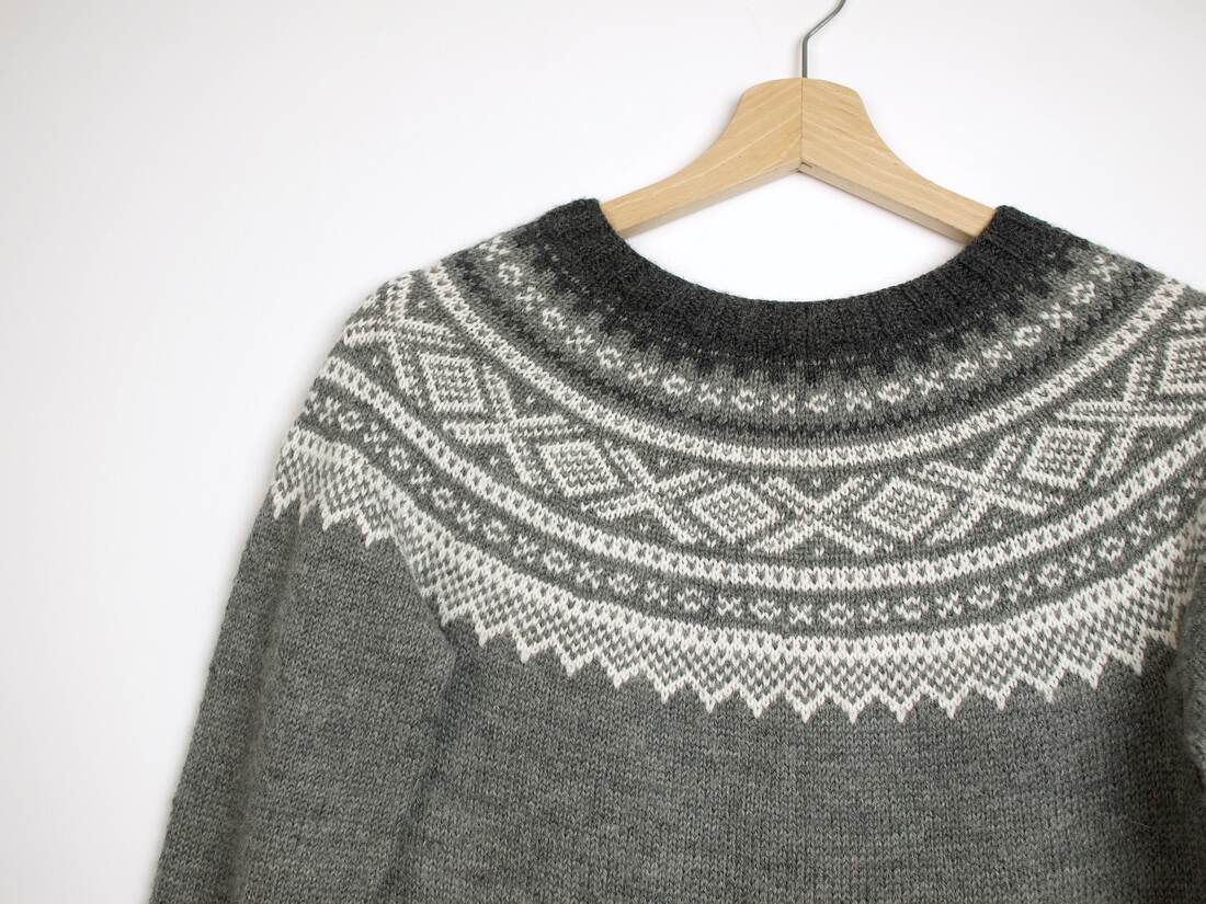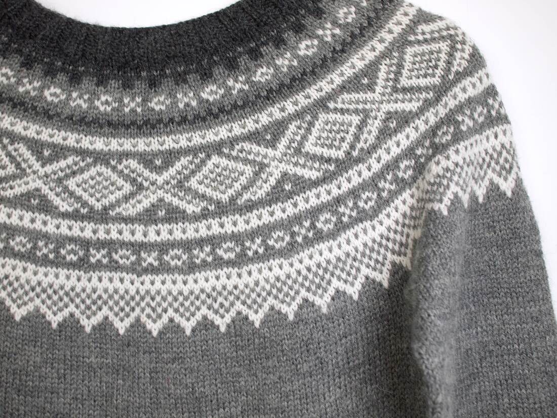 Wełniany sweter vintage we wzory. Polecam na XS. Bez wad.
