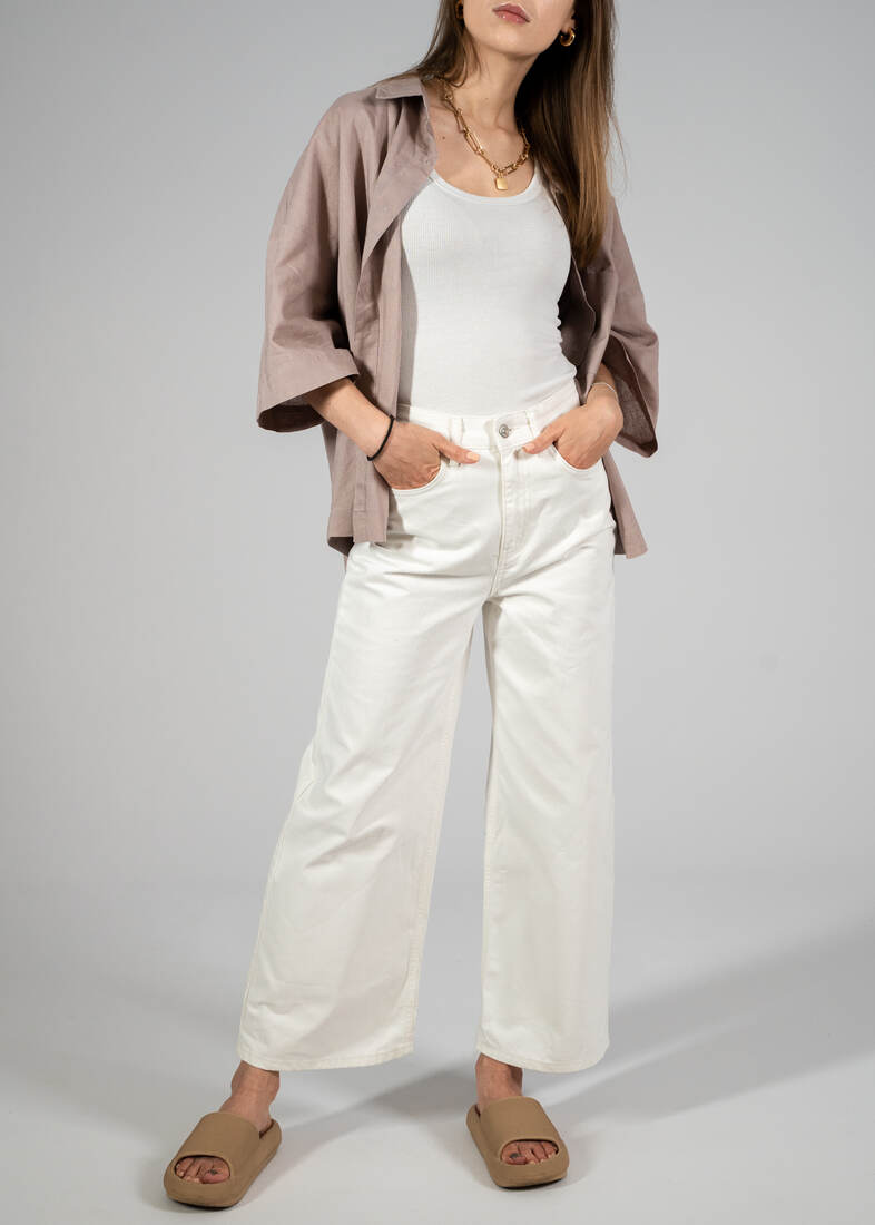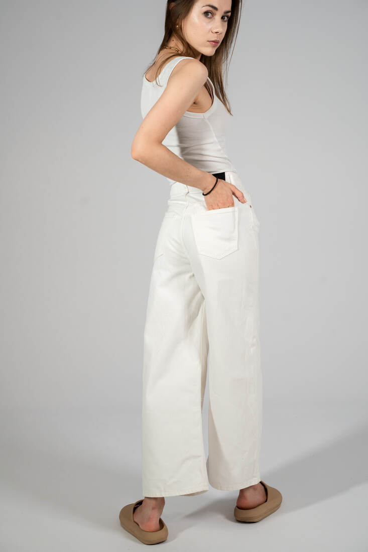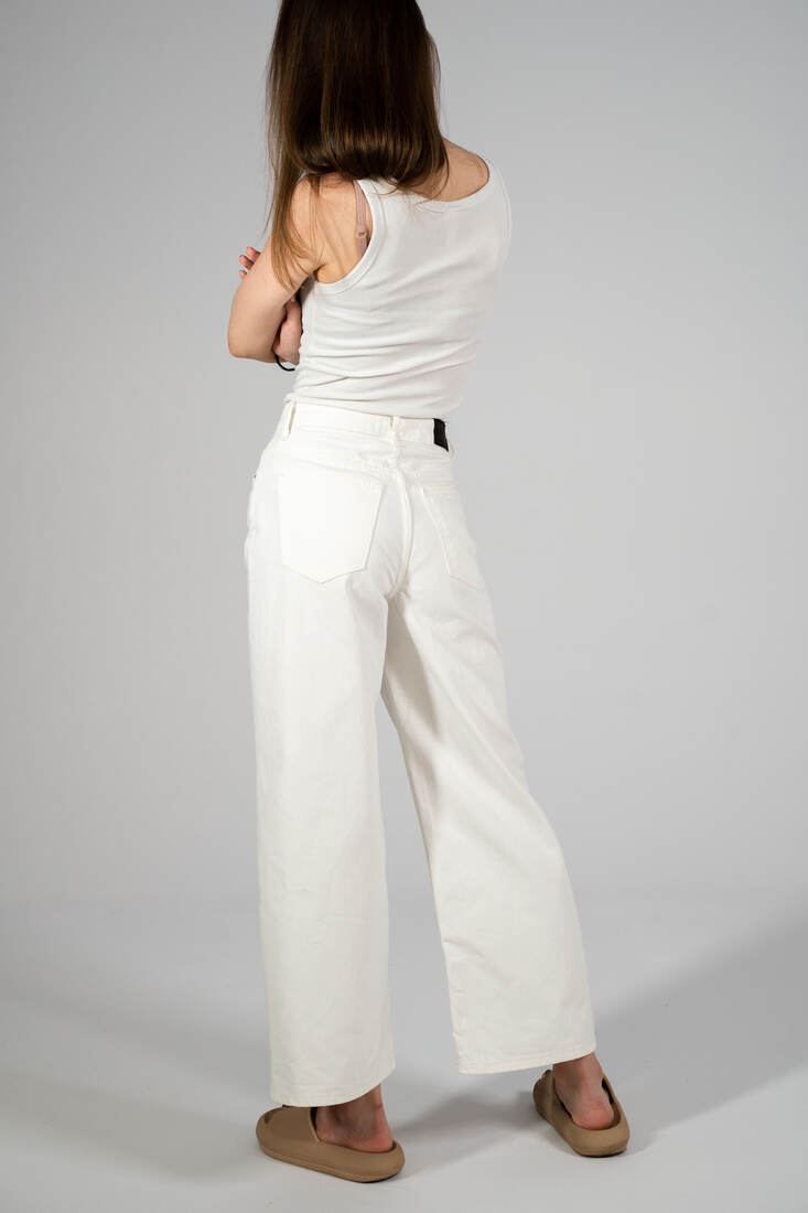 Jeansy wide leg, z wysokim stanem. Wycięta metka ze składem, jeansy nie są elastyczne, więc prawdopodobnie w 100% wykonane z bawełny. Polecam na XS. Idealny stan.