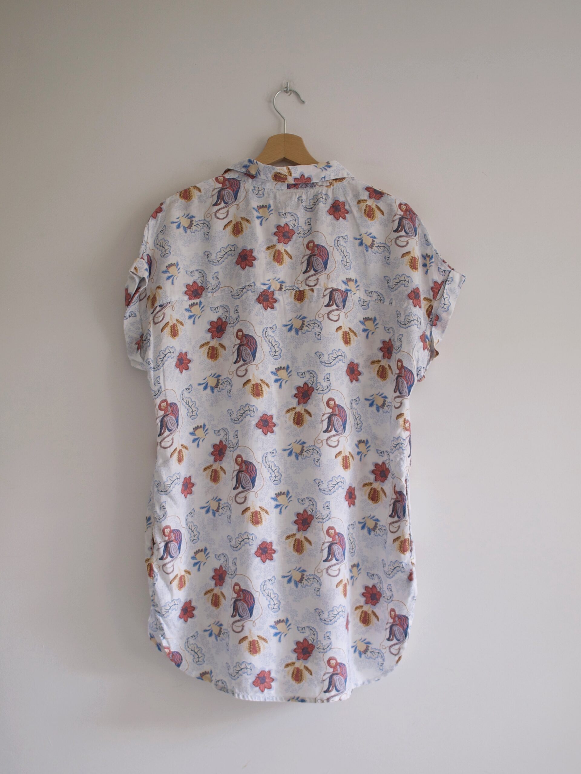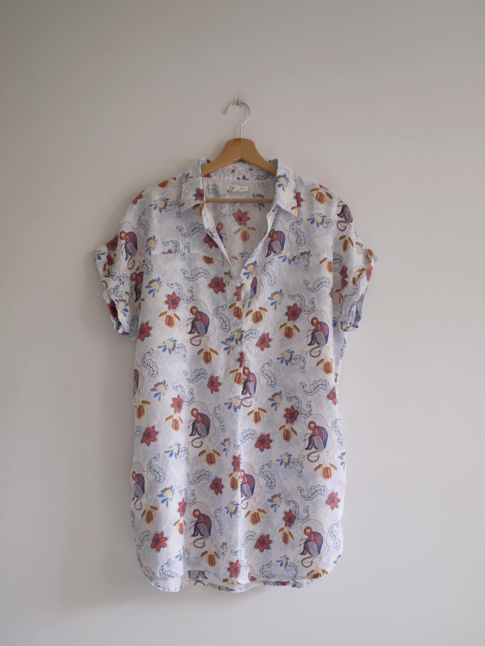 Koszula vintage z ozdobnymi guzikami, bardzo przyjemna w dotyku. Materiał to poliester, koszula prawie nie gniecie się.