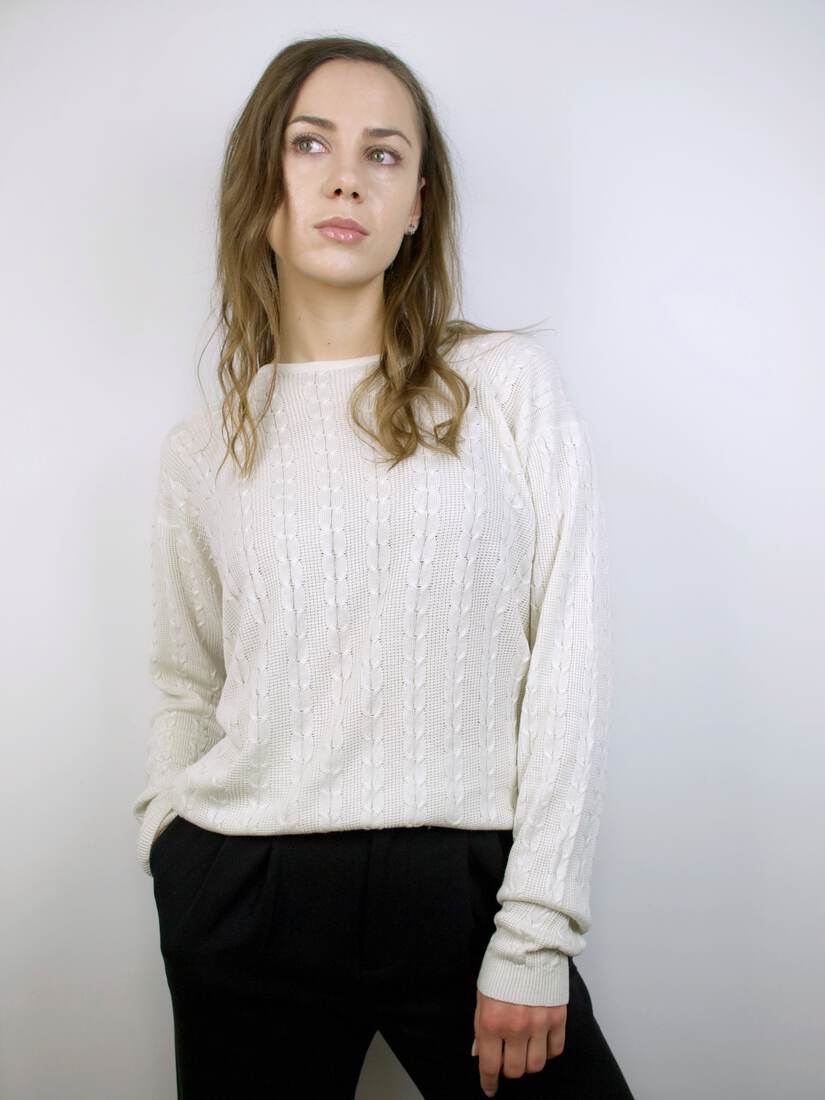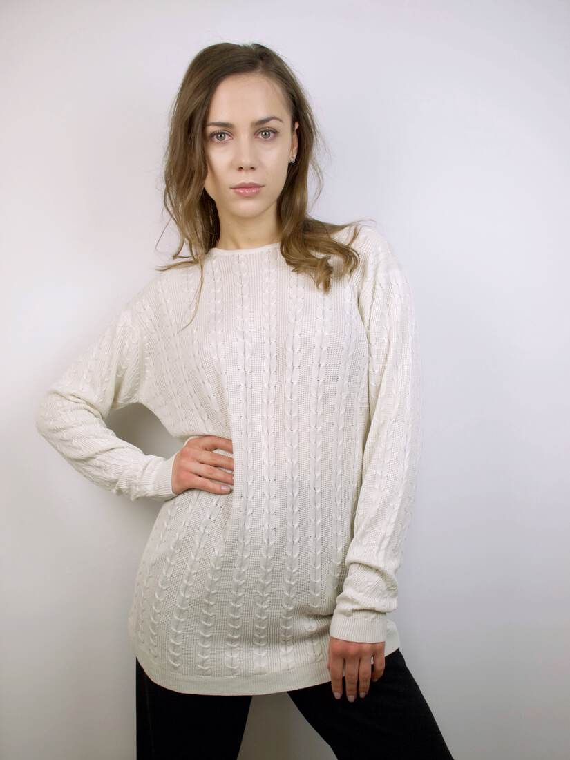 Sweter vintage, wykonany. z wiskozy z dodatkiem jedwabiu. Brak metki z rozmiarem, polecam na L. Bez wad.